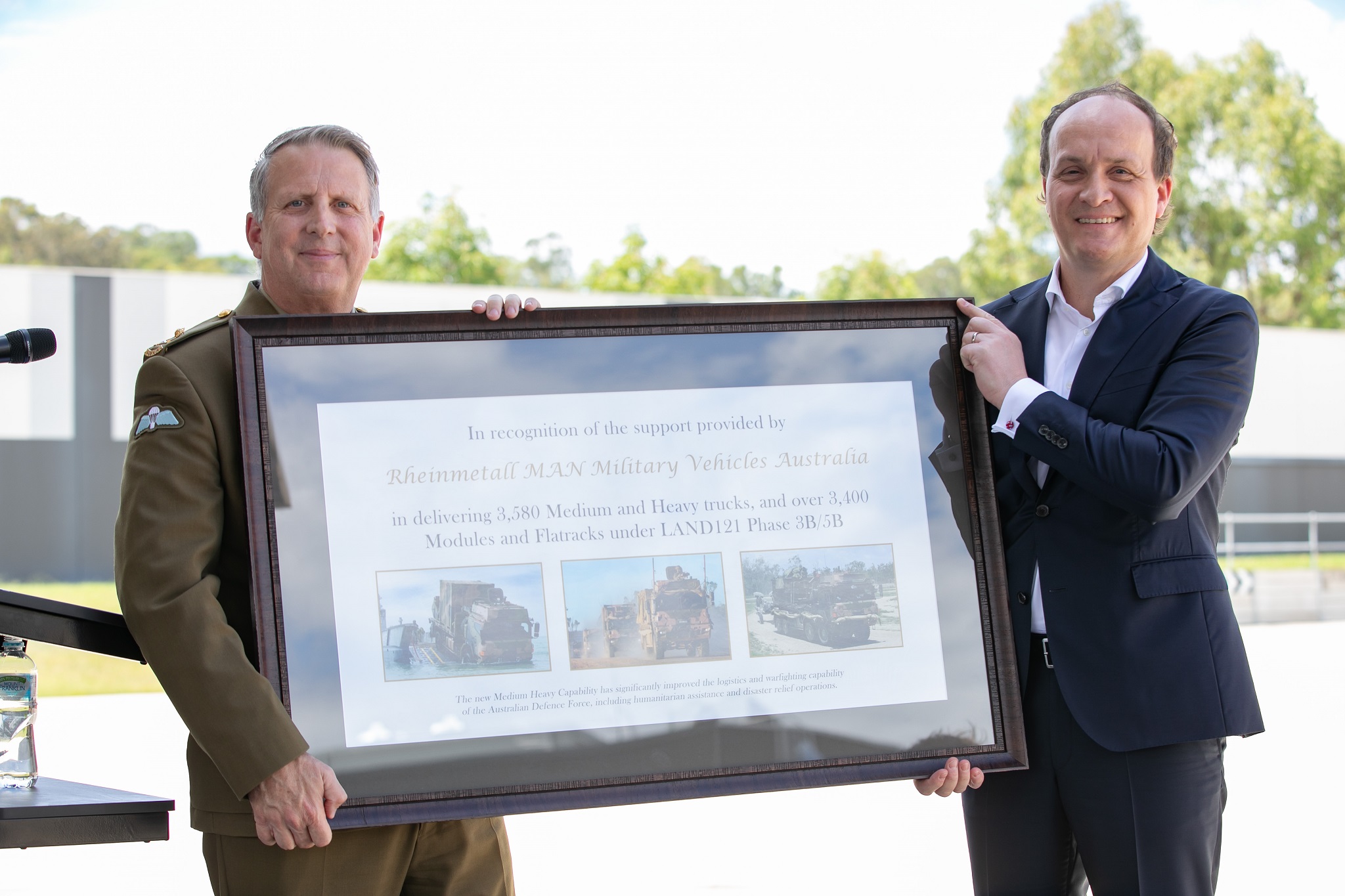 (pressebox) (Düsseldorf, 20.02.2025) Rheinmetall MAN Military Vehicles Australia (RMMVA) hat am 20. Februar 2025 gemeinsam mit dem australischen Verteidigungsministerium den erfolgreichen Abschluss des LAND 121 Phase 3B/5B-Programms gefeiert. Die Final Acceptance- Zeremonie fand in Rheinmetalls Military Vehicles Center of Excellence (MILVEHCOE) in Queensland statt.