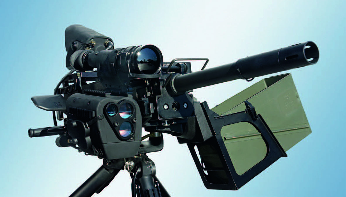Another Rheinmetall Electro-Optics product on show is the Vingmate advanced sight and fire control system. Besides the aiming device and fire control unit, it consists of a combined tripod and softmount, capable of receiving various 40mm automatic grenade launchers or .50 calibre heavy machine guns. Because the fire control unit can store up to ten ballistic firing tables, the effector of the Vingmate system can be quickly changed without having to readjust the weapon being used.