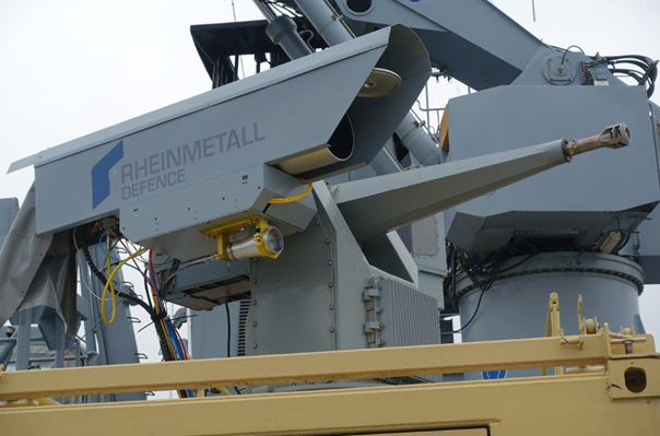 Für das Testprogramm adaptierte Rheinmetall einen Hochenergielaser (HEL)-Effektor der Klasse 10 Kilowatt auf ein Marineleichtgeschütz 27 (MLG 27).