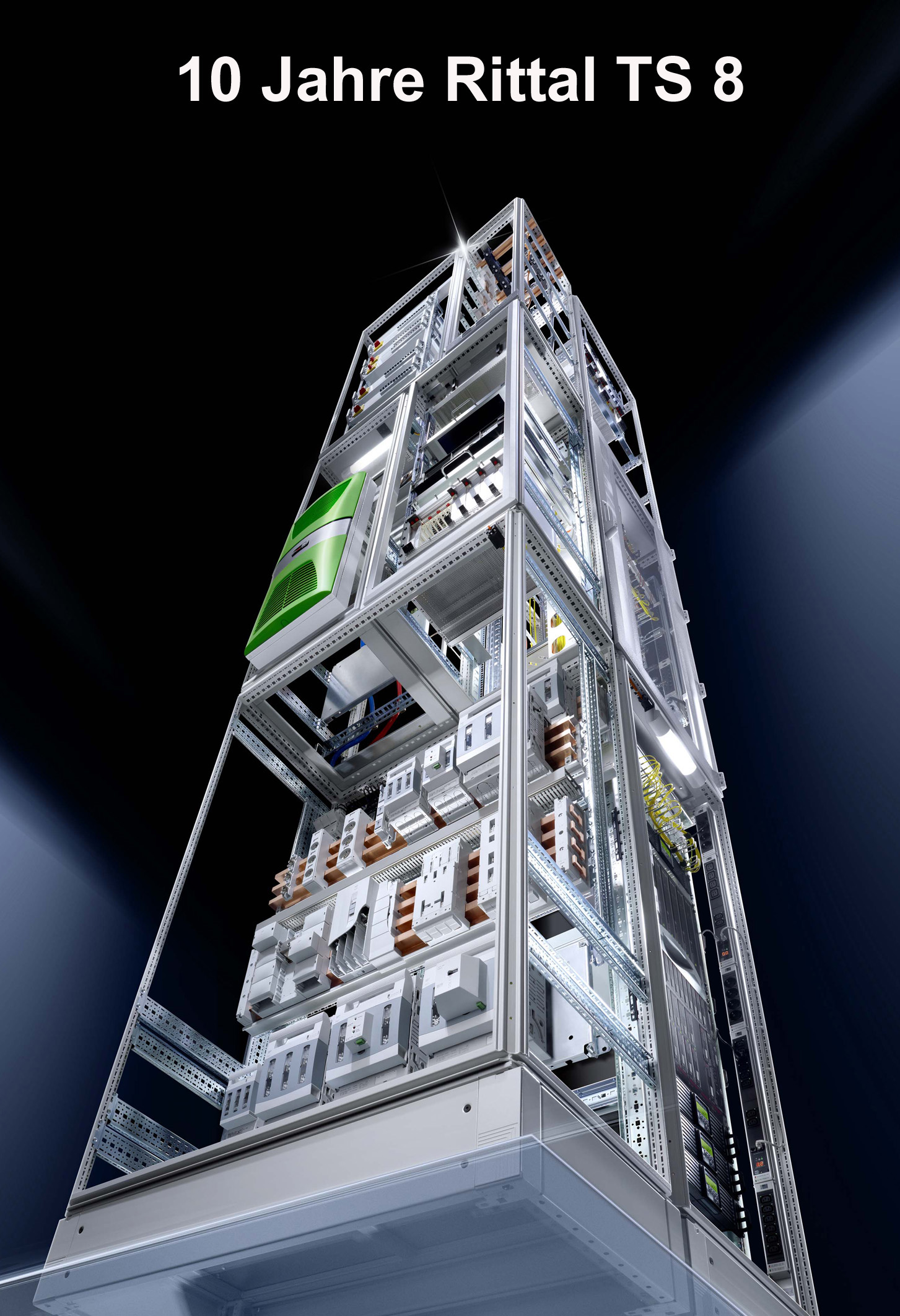 Heute ist das "Multitalent" TS 8 über 4,5 Millionen Mal im Einsatz. Der Top-Schrank ist die Systembasis für die einzigartige Rittal Systemarchitektur "Rittal - Das System" und weltweiter, branchenübergreifender Schaltschrank- und IT-Rack-Standard in der Industrie, IT und Telekommunikation. Neben den klassischen Bereichen des Maschinen- und Anlagenbaus kommt der TS 8 in verschiedensten Anwendungen weltweit zum Einsatz: z. B. bei Data Center-Lösungen, der Energie- und Verkehrstechnik, in Outdoor- und Offshore-Bereichen, der Elektronik und Medizintechnik sowie der Chemie- und Prozessindustrie.
