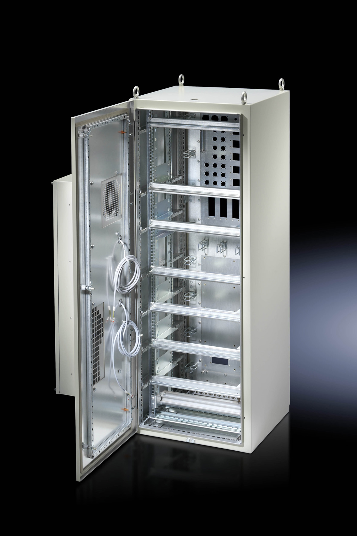 Die LLWT von Rittal sind in bahnfester Ausführung nach EN 50155 konstruiert und auf Schock- und Vibrationsfestigkeit nach EN 61373 getestet. So gewährleistet eine sichere Verbindungstechnik, dass sich auch bei hoher dynamischer Beanspruchung im täglichen Schienenverkehr keine Schrauben lösen. Zwei getrennte Luftkreisläufe verhindern das Eindringen von Staub in den Schaltschrank.