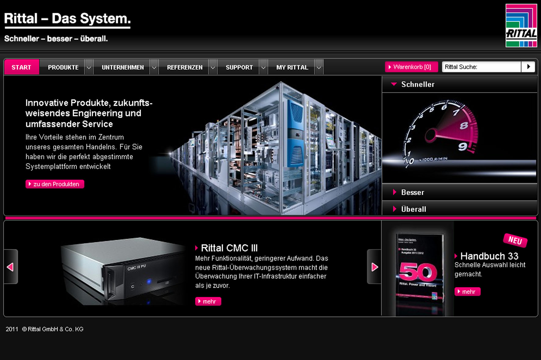 Nachdem Rittal bereits im Sommer sein neues, 840-seitiges Produkthandbuch veröffentlicht hat, geht das Unternehmen jetzt auch mit einem vollständig neu konzipierten Internet-Auftritt an den Start. Beide Medien ergänzen sich optimal: Der Aufbau ist beim Handbuch und im Internet identisch; das Internet liefert komplementär Detail- und Hintergrundinformationen zu den Produkten aus den Bereichen Schaltschränke, Stromverteilung, Klimatisierung, IT-Infrastrukturen sowie Software und Service.