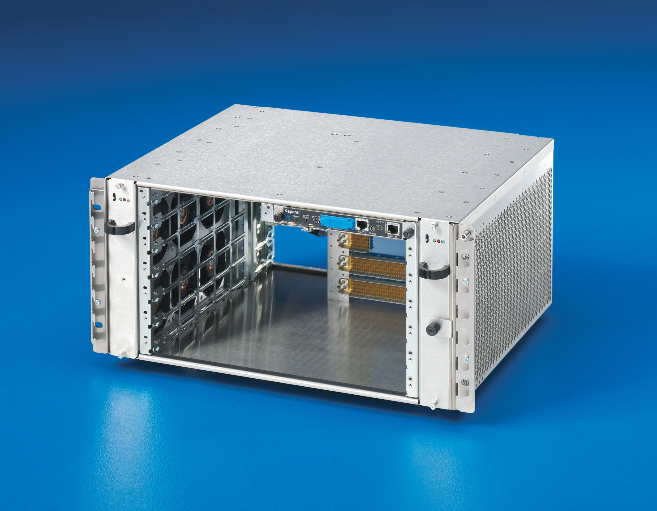 Die Shelf-Version entspricht der PICMG 3.0 Spezifikation. Sie ist wahlweise mit einer Dual Star oder Full Mesh Backplane ausgestattet, komplett verdrahtet und funktionsgetestet. Außerdem ist ein Shelf Management Controller Pigeon Point oder optional Intel Wagontire integriert. Zur Kühlung höchster Verlustleistungen bietet Rittal effektive Klimalösungen. Das 19" breite und 400 mm tiefe Shelf garantiert mit zwei herausziehbaren Hot-Swap-fähigen Lüftereinheiten sowie einem herausziehbaren Filter effiziente Kühlleistungen von bis zu 200 W pro Slot im Front- und 30 W im RTM-Bereich.