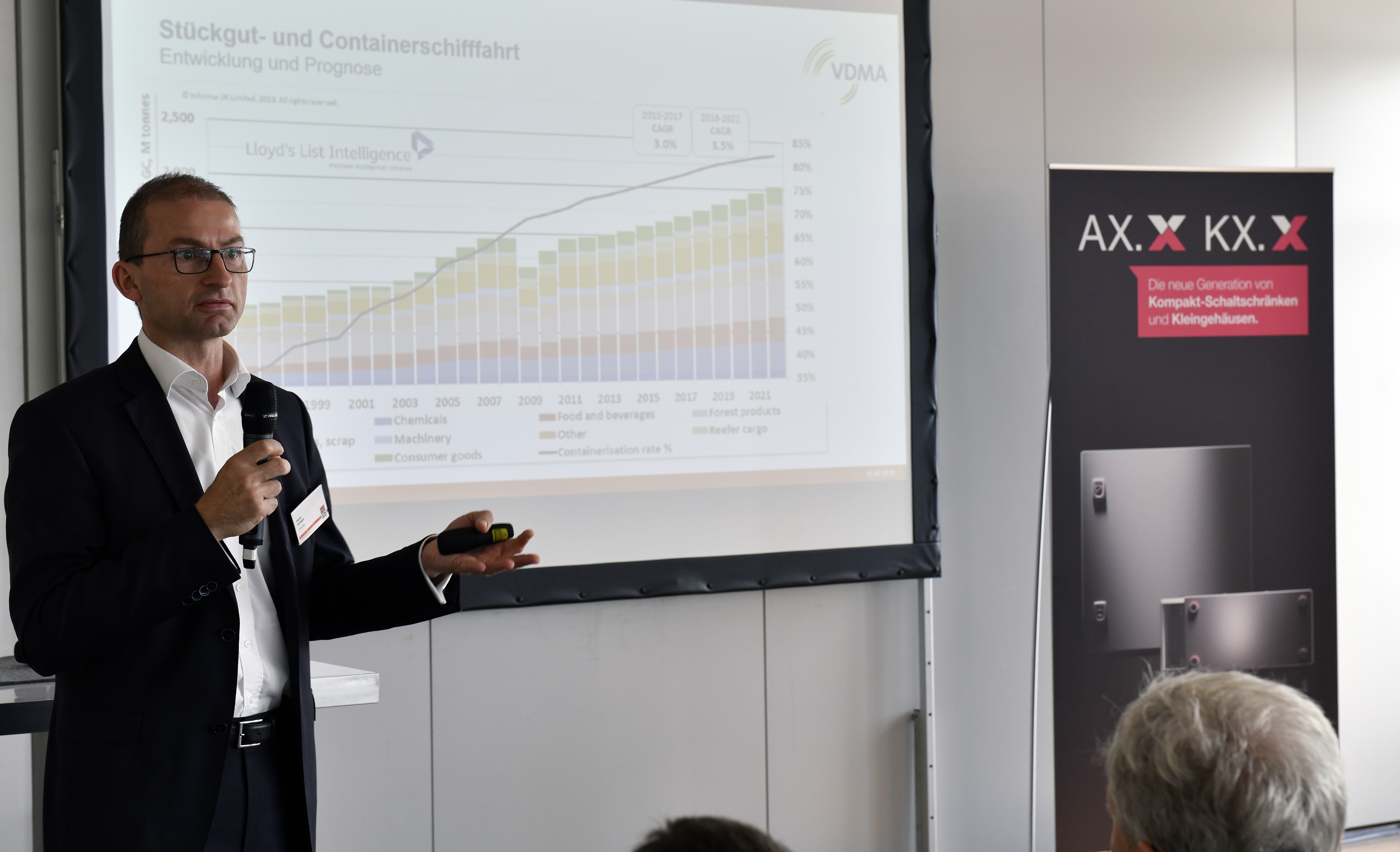 In their presentations, a number of experts illustrated the way in which the maritime industry was developing. For instance, in his presentation Hauke Schlegel, Managing Director of VDMA Marine Equipment and Systems, showed that more and more goods were being transported worldwide. The total volume is worldwide forecast to be approx. 16 trillion tonnes by 2022. The lion’s share – around 12 trillion tonnes – will be transported as sea cargo. This means that shipping will remain the most important global transport mode for moving goods over long distances. This is why it will also be very important to continue optimising the efficiency and pollutant emissions of marine engines.