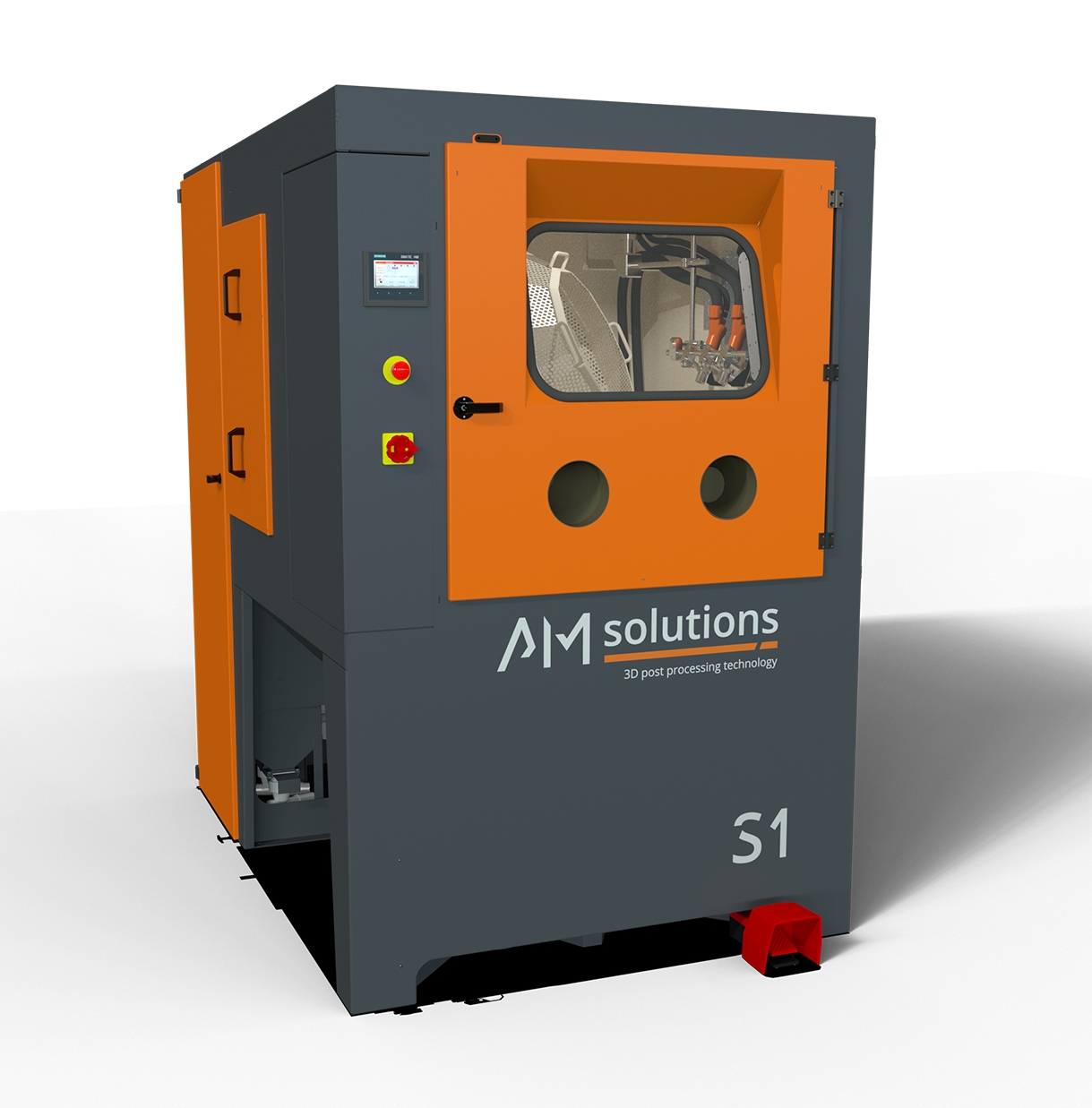 Das Entfernen von Pulverresten ist ebenso wie die Oberflächenvorbereitung für die nachfolgenden Prozesse, wie beispielsweise Lackieren oder Beschichten, ein essentieller Schritt in der Fertigungskette pulverbettbasiert hergestellter Kunststoffteile. Mit der neusten Generation der S1 hat AM Solutions – 3D post processing technology, der auf Nachbearbeitungslösungen für additiv gefertigte Komponenten spezialisierte Unternehmensbereich der Rösler-Gruppe, eine kosteneffiziente Plug-and-Play-Anlage für das automatisierte Entpulvern und Reinigen von kleinen und mittleren Bauteilserien entwickelt.