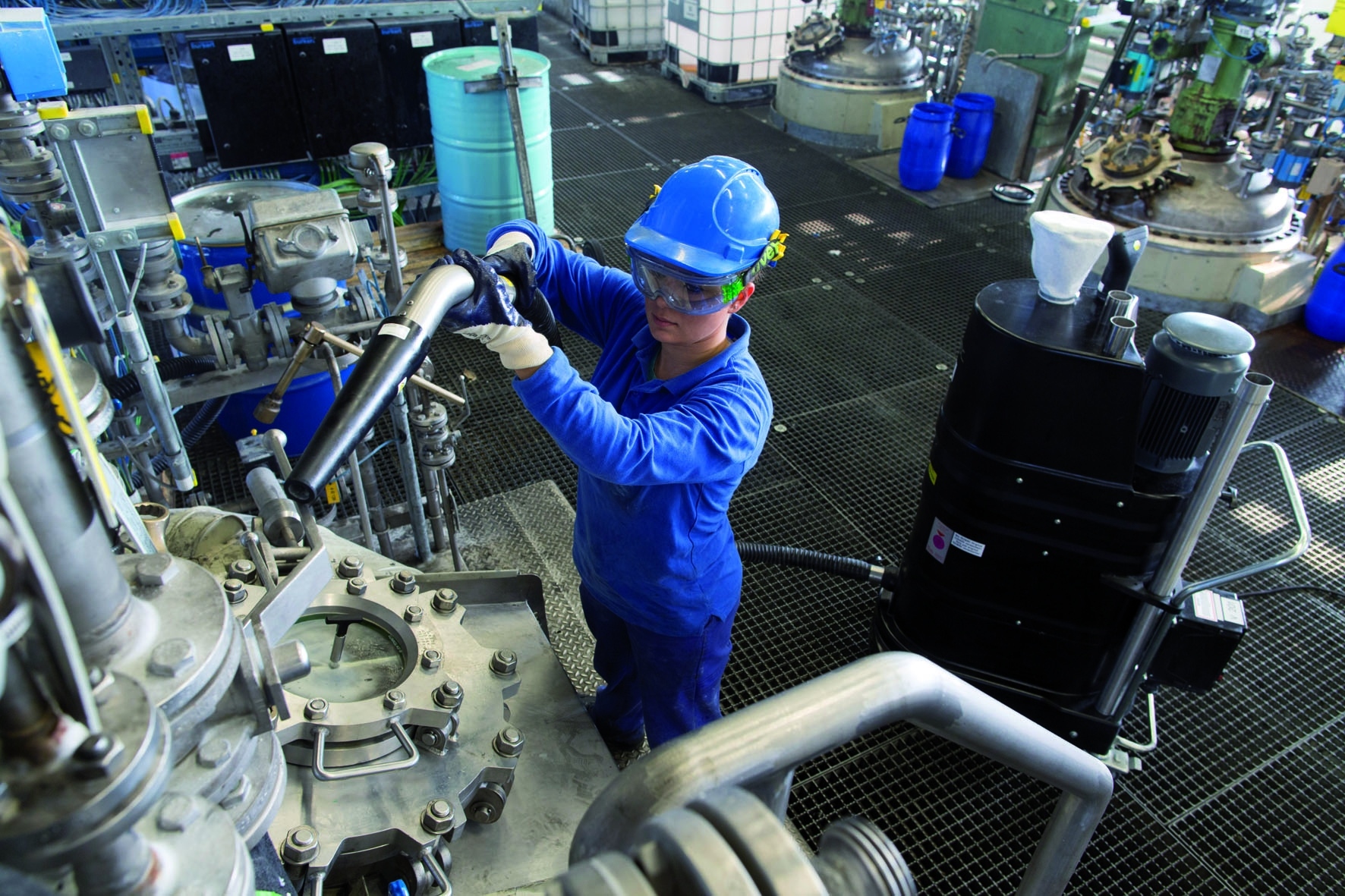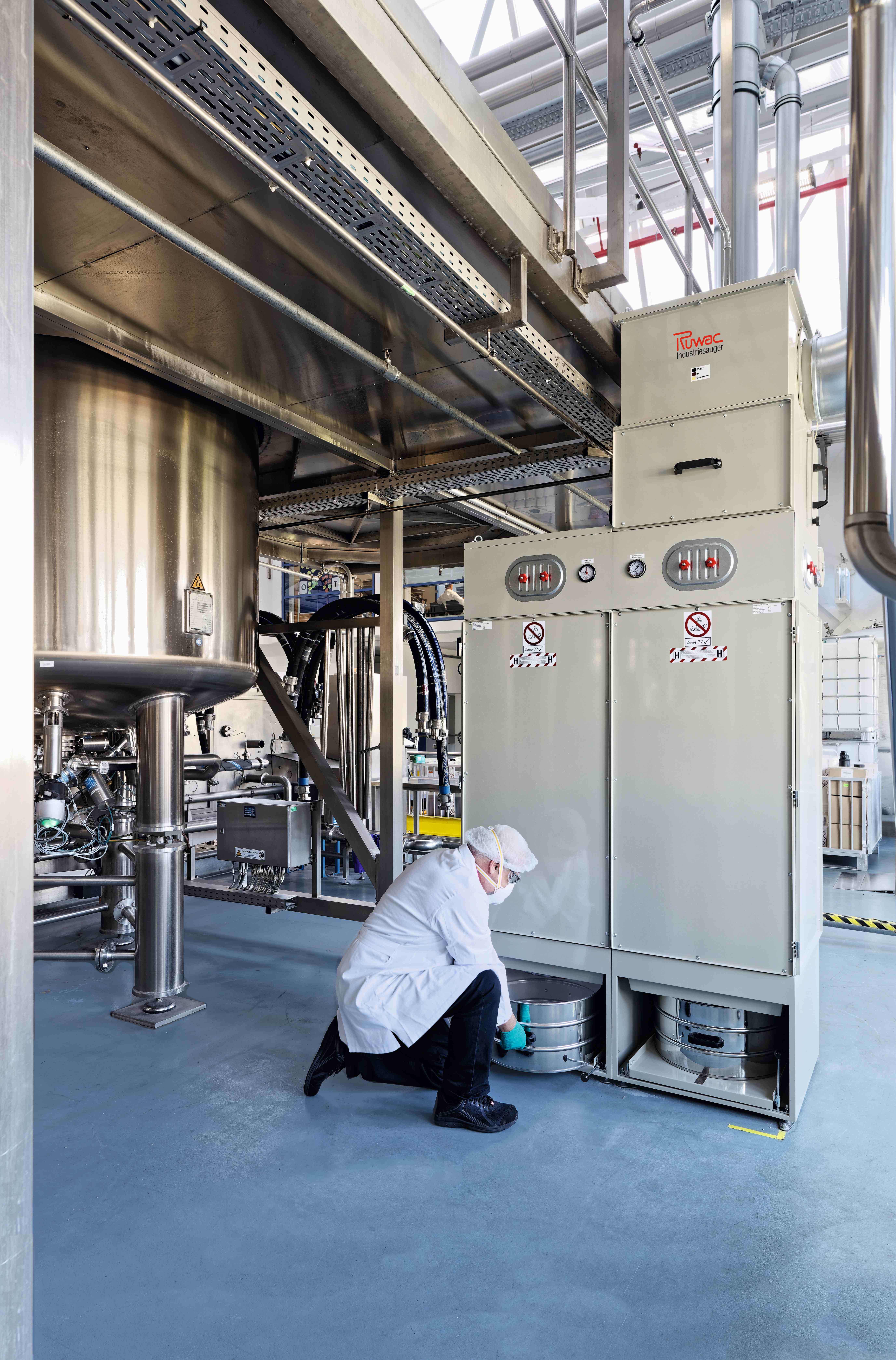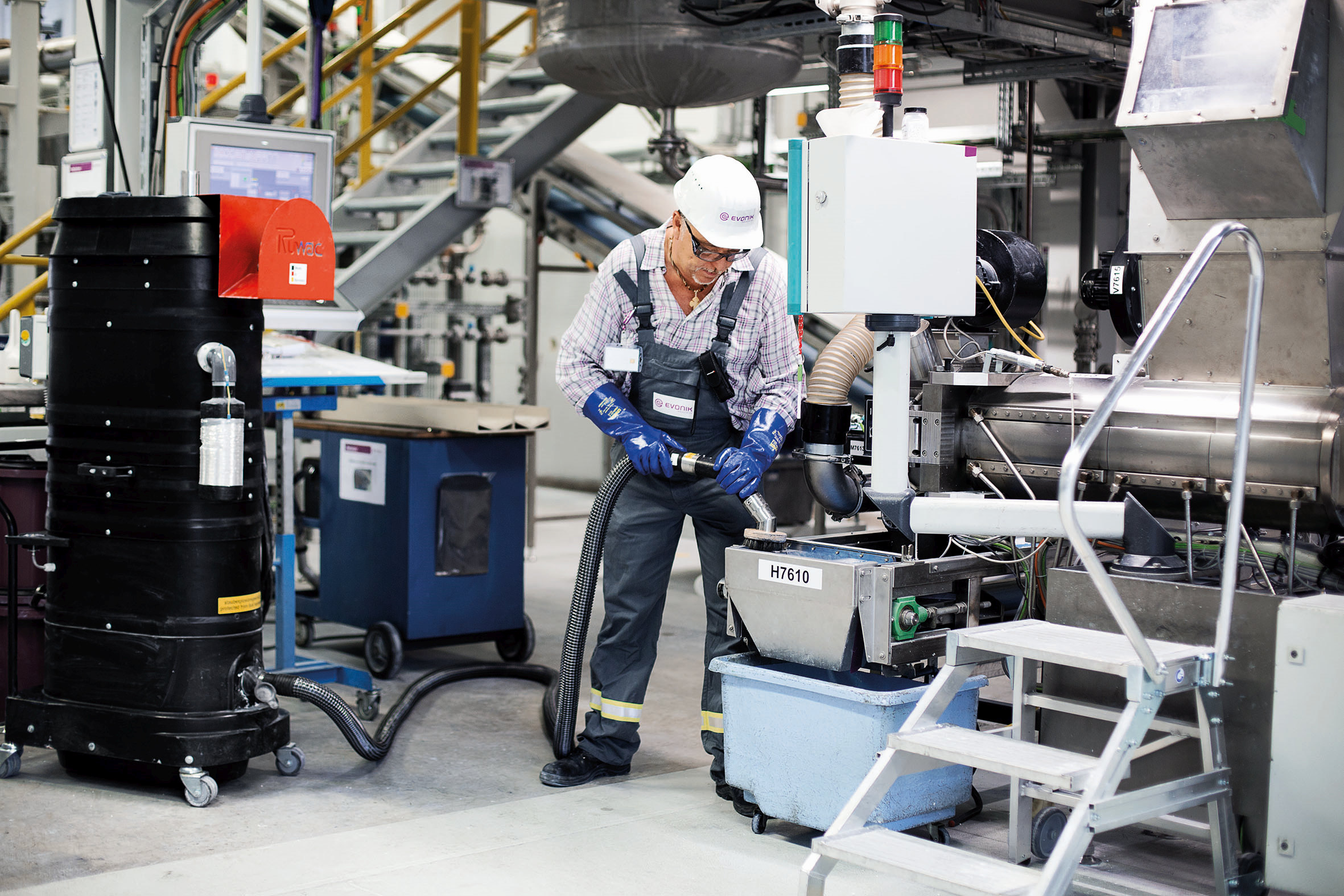 Der Ruwac-Sauger wird im Silikon-Emulsions-Betrieb von Evonik in Essen für vielfältige Reinigungsaufgaben genutzt. (Foto: Ruwac)