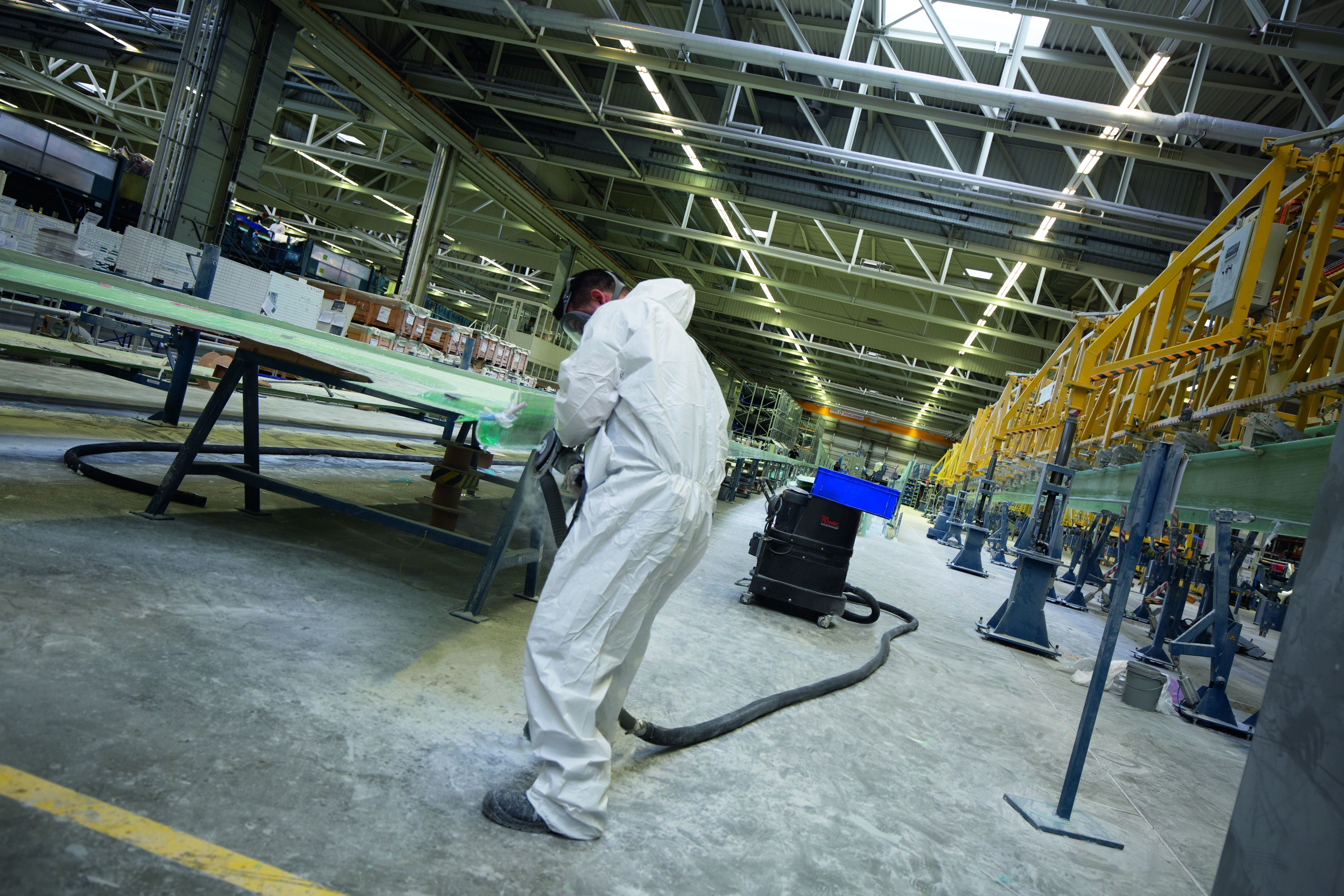 Bei Nordex in Rostock ist jedes Handschleifgerät mit einer integrierten Absaugung aus-gestattet.