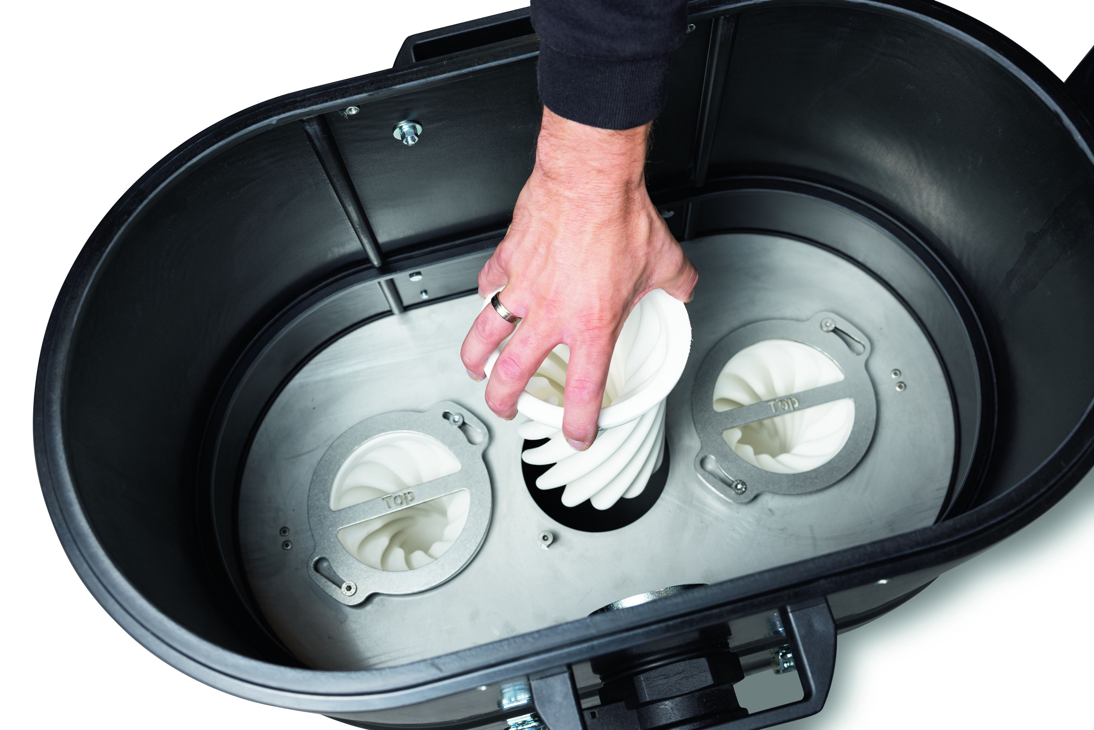 Die „gewendelte“ Form der Filterelemente ist ungewöhnlich, aber hoch wirksam. Sie lassen sich einfach entnehmen und reinigen oder sogar im Autoklaven sterili-sieren.