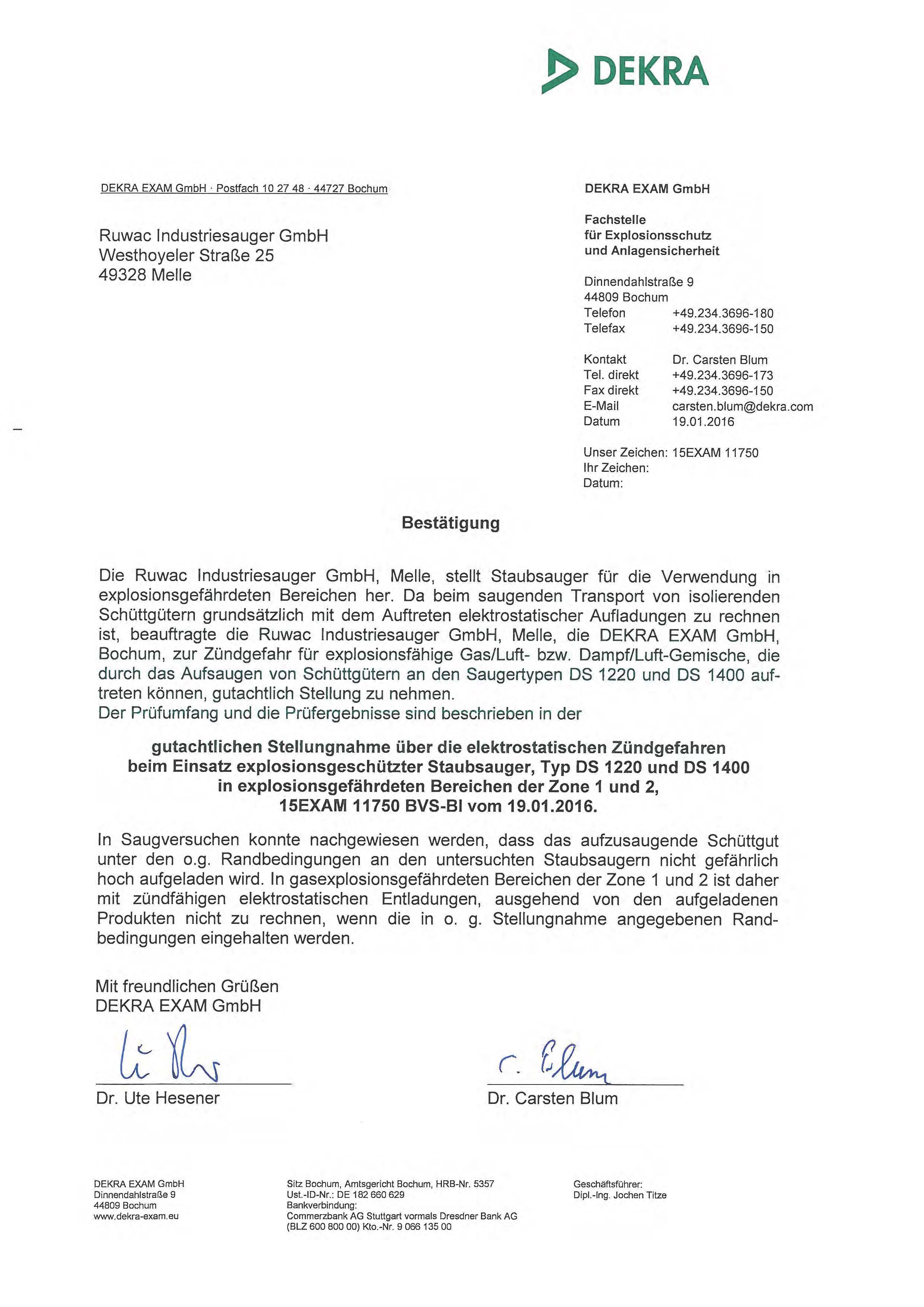 Einsatz des Staub-Ex-Saugers an einer Formgebungsanlage für Katalysatoren