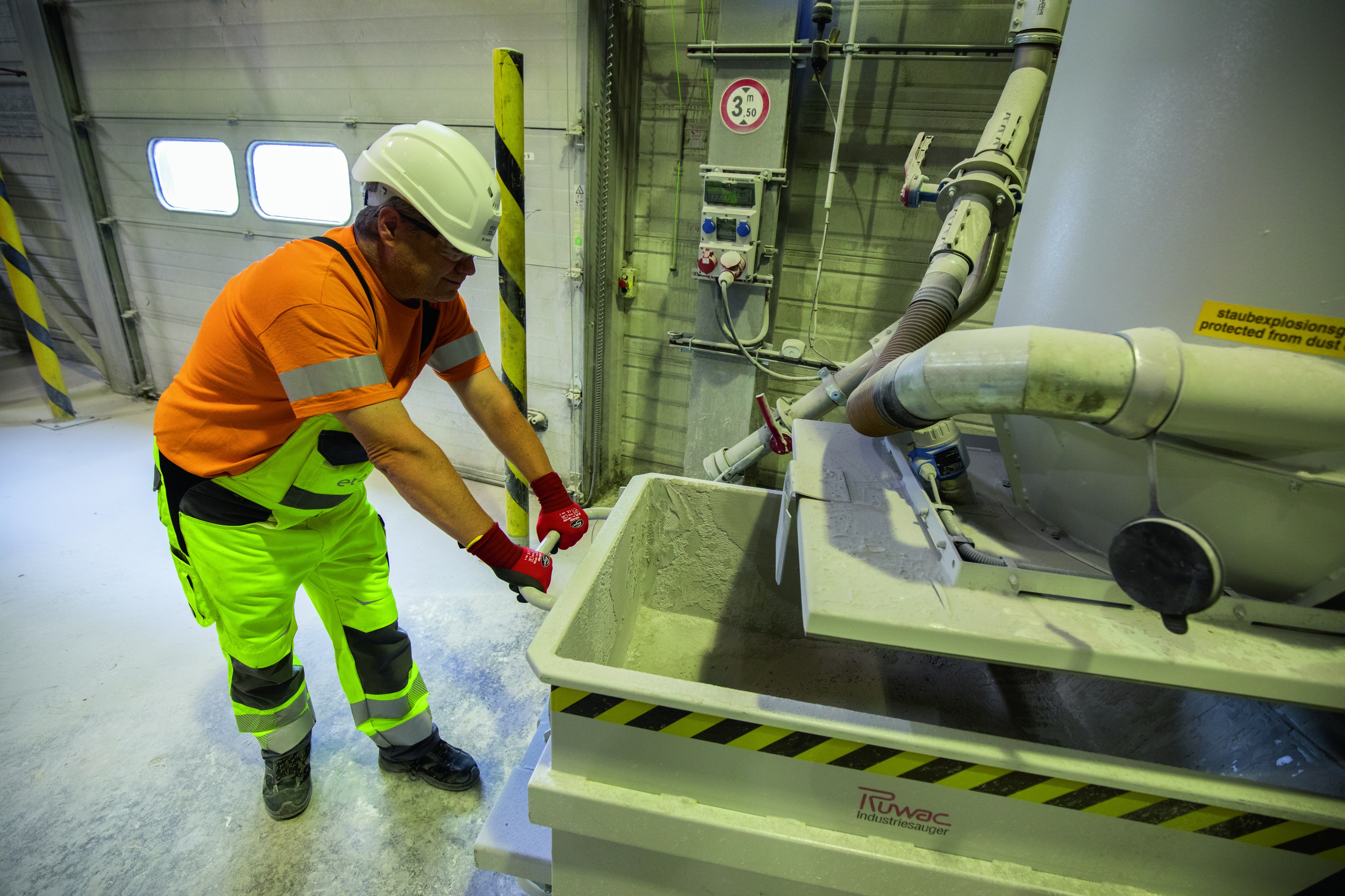In der weitläufigen Aufbereitungsanlage sind überall Saugstutzen installiert. Wird dort ein Saugrohr angeschlossen, startet die zentrale Absaugung.