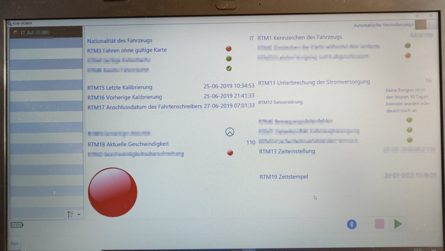 Im dritten Teil des Workshops stand der Einsatz des DSRC im Fokus. Hierfür stellte Olaf Horwarth, Mitglied im Tachographenforum der EU und Inhaber von SBS Fleet-Competence, zwei sogenannte Enforcement-Kits zur Verfügung. Mit Hilfe dieser DSRC-Empfänger können bei Fahrzeugen, die mit einem intelligenten Fahrtenschreiber (Pflicht für Erstzulassungen seit 15.06.2019) ausgerüstet sind, wichtige Daten über Störungen und Ereignisse detektiert werden, ohne dass das Fahrzeug hierzu angehalten werden muss. Der DSRC-Empfänger wird dabei auf einem Stativ, einer Leitplanke oder dem Dach des Kontrollfahrzeugs angebracht. Die dazugehörige Software empfängt fortlaufend die im technischen Anhang der Tachographenverordnung definierten Datensätze. So kann u.a. die aktuelle Geschwindigkeit oder das gespeicherte Ereignis „Fahren ohne Fahrerkarte“ direkt beim Vorbeifahren erkannt werden. Ferner werden weitere Daten zur Früherkennung möglicher Manipulationsversuche an den Empfänger übermittelt und in der Software auffällig visualisiert.