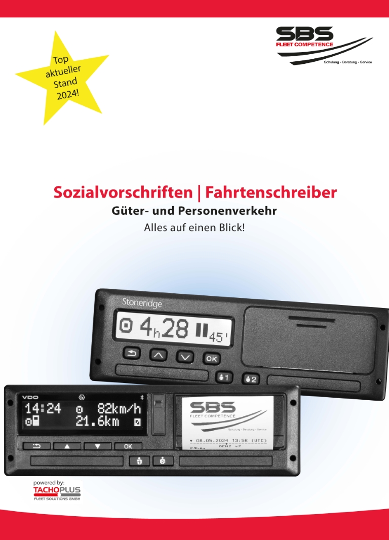 SBS Fleet-Competence unterstützt Unternehmen bei der Umsetzung ihrer Pflichten mit Seminaren und Fachmedien. Der aktuelle Praxisleitfaden "Alles auf einen Blick" enthält alle relevanten Vorschriften für Fahrer zu den Sozialvorschriften und den Fahrtenschreibern und kann direkt über diesen Link bestellt werden.