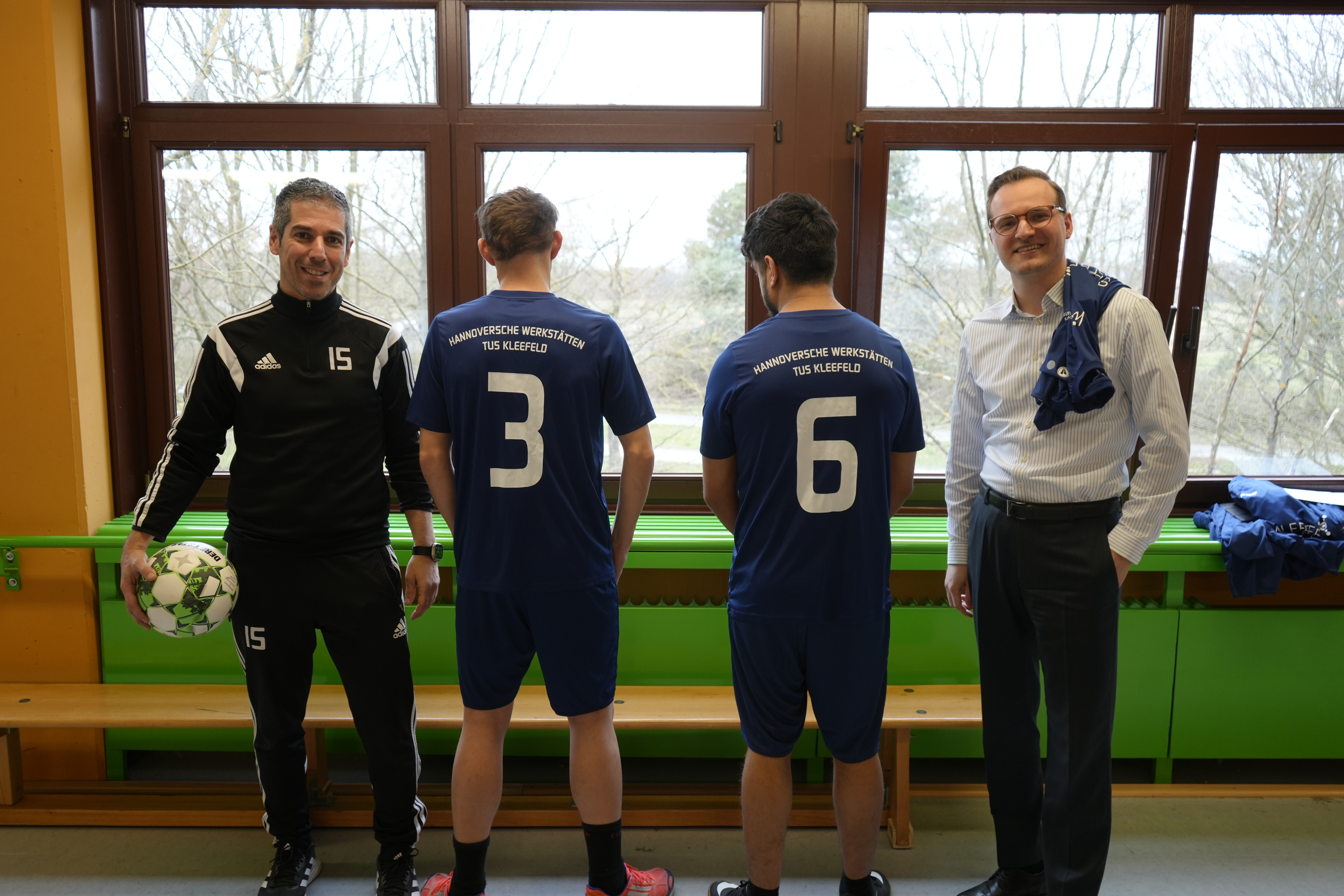 From the left side: Elias (trainer of the Team), Nico and Elvis (players of the Team), and Christof Wenzeritt (Scalefree) at the hannoverschen Werkstätten