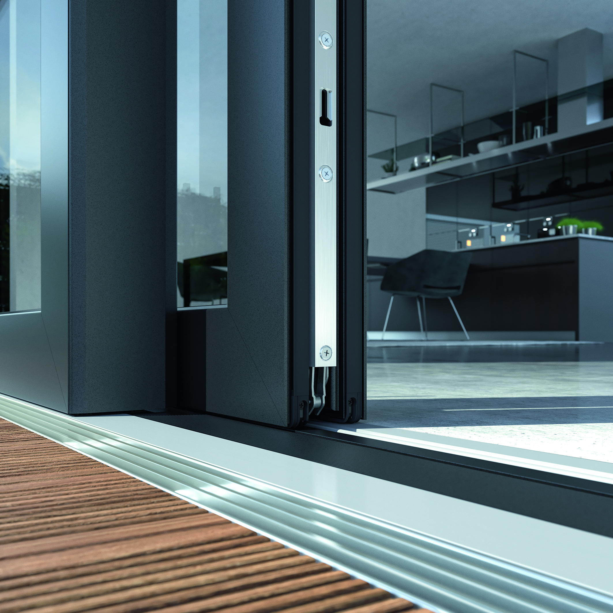 Neben den Fenstern und Türen müssen auch Schiebesysteme besondere Anforderungen erfüllen, um komfortabel und leicht für alle Bewohner gleichermaßen, ob mit oder ohne motorischen Einschränkungen, nutzbar zu sein. Hier wird eine bodengleiche Schwelle deshalb ebenfalls gefordert. Die Schüco Aluminium-Schiebe- und Hebeschiebesysteme ASE 60 (Aluminium Sliding Element, Bautiefe 60 mm) und ASE 80.HI (Aluminium Sliding Element, High Insulated, Bautiefe 80 mm) wie auch das Hebeschiebesystem Schüco LivIngSlide aus Kunststoff erfüllen diese Anforderungen. Dabei sorgt vor allem die barrierefreie Nullschwelle für einen zusätzlichen Komfort und ein ebenmäßiges Bild zwischen Innen und Außen. Und auch die klassischen Anforderungen wie eine effektive Wärmedämmung und eine Einbruchsicherheit bis RC 2 können in Kombination mit der Nullschwelle bei den Schiebe- und Hebeschiebesystemen aus Aluminium und Kunststoff problemlos realisiert werden.
