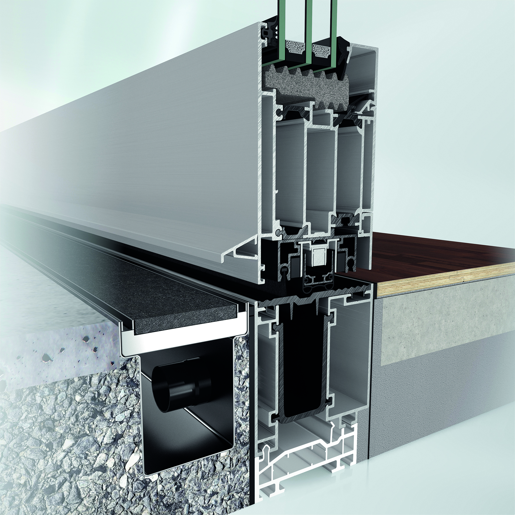 Die Balkon- oder Terrassentüren der Aluminium-Konstruktion Schüco AWS (Aluminium Window System) barrierefrei wurden entwickelt, um allen Bedürfnissen nach Komfort und Design gerecht zu werden. Die Fenstertür AWS barrierefrei kann mit einer ebenerdigen Nullschwelle umgesetzt werden, die einen stolperfreien Übergang zwischen Innen und Außen ermöglicht. Die Schwelle erreicht nach der durch das ift Rosenheim herausgegebenen Richtlinie „Ermittlung der Klassifizierung der Überrollbarkeit von Schwellen (BA-01/1)“ mit Klasse 6 die höchste Klassifizierung. Damit kommen Rollstuhlfahrer, kleinere Kinder oder Menschen mit Gehhilfen sicher und problemlos über die Schwelle. Eine Absenkdichtung mit verzögerter hydraulischer Absenkung ermöglicht einen kräftefreien Schließvorgang. Für eine leichte manuelle Bedienbarkeit (Bedienkraft Klasse 2) sorgen die Schüco Beschläge im Flügelrahmen. Mit Nullschwelle realisiert werden können die Aluminium-Fenster- bzw. Fenstertür-Konstruktionen Schüco AWS 70.HI, AWS 75.SI+ und AWS 90 SI+ (70, 75 und 90 mm Bautiefe) sowie die Kunststoff-Fenstertüren der Schüco LivIng und Schüco LivIng Alu Inside Serie.