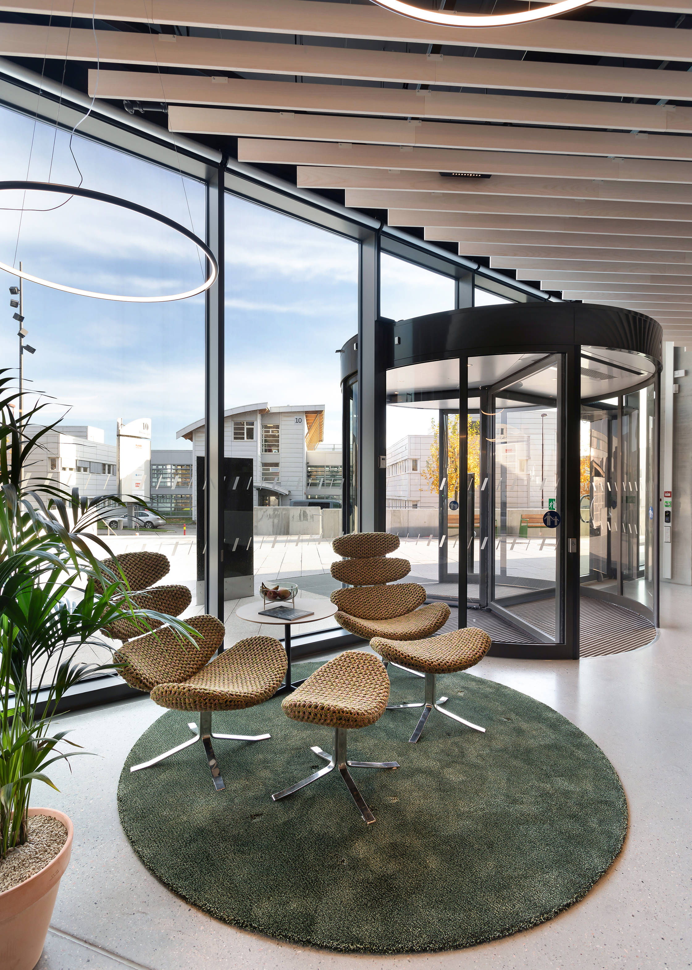 Die hochwärmegedämmten und mit Dreifachisolierverglasung versehenen Fenster und Vorhangfassaden überzeugen sowohl in gestalterischer als auch in technischer Hinsicht, da sie niedrigste thermische Kennwerte gewährleisten: Der Wärmedurchgangskoeffizient aller Fenster (Uw-Werte) und Vorhangfassaden (Ucw-Werte), einschließlich der Rahmenprofile und Verglasungen, beträgt 0,75 W/m²K, der Gesamtenergiedurchlassgrad (g-Wert) der Verglasung liegt bei 37 Prozent und hinsichtlich der Tageslichttransmission bei 63 Prozent.