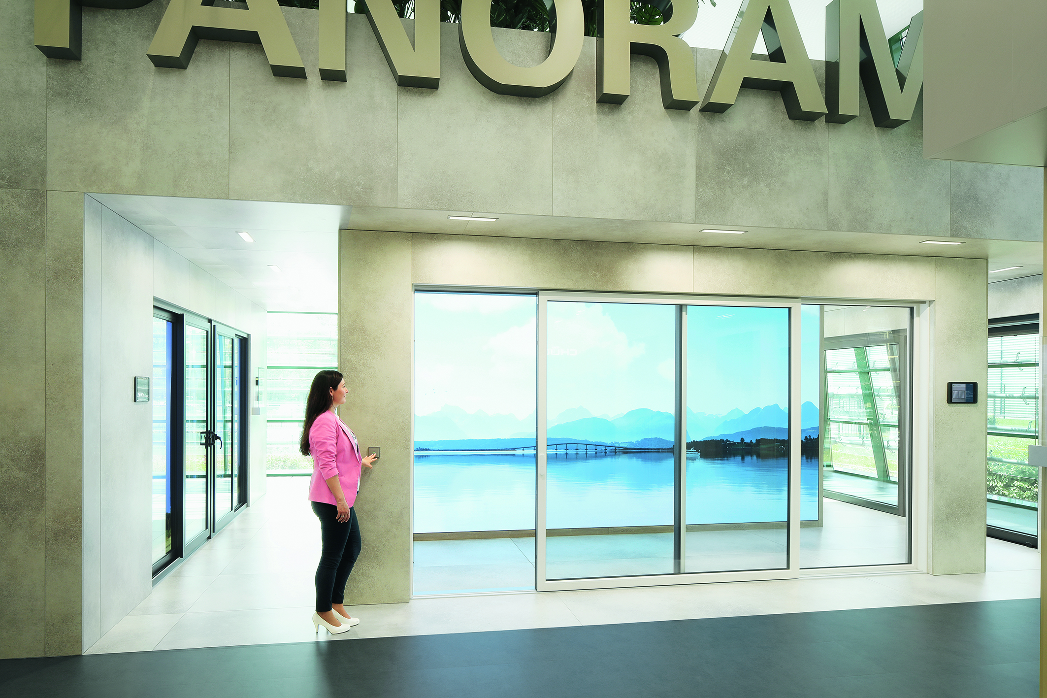 The Panorama area features sliding and lift-and-slide doors made from PVC-U for excellent views and maximum natural light penetration without compromising on energy efficiency, security, comfort or design. Outdoor landscapes set the scene for Schüco LivIngSlide versions such as the Panorama design with extremely slimline profile face widths, a barrier-free level threshold and a concealed, electronic drive. Alternatively, there is a mechanical version with the ComfortStop function and burglar resistance to class RC 2. In addition, the company introduces the new Schüco SoftSlide sliding system and the new Schüco EasySlide lift-and-slide generation.