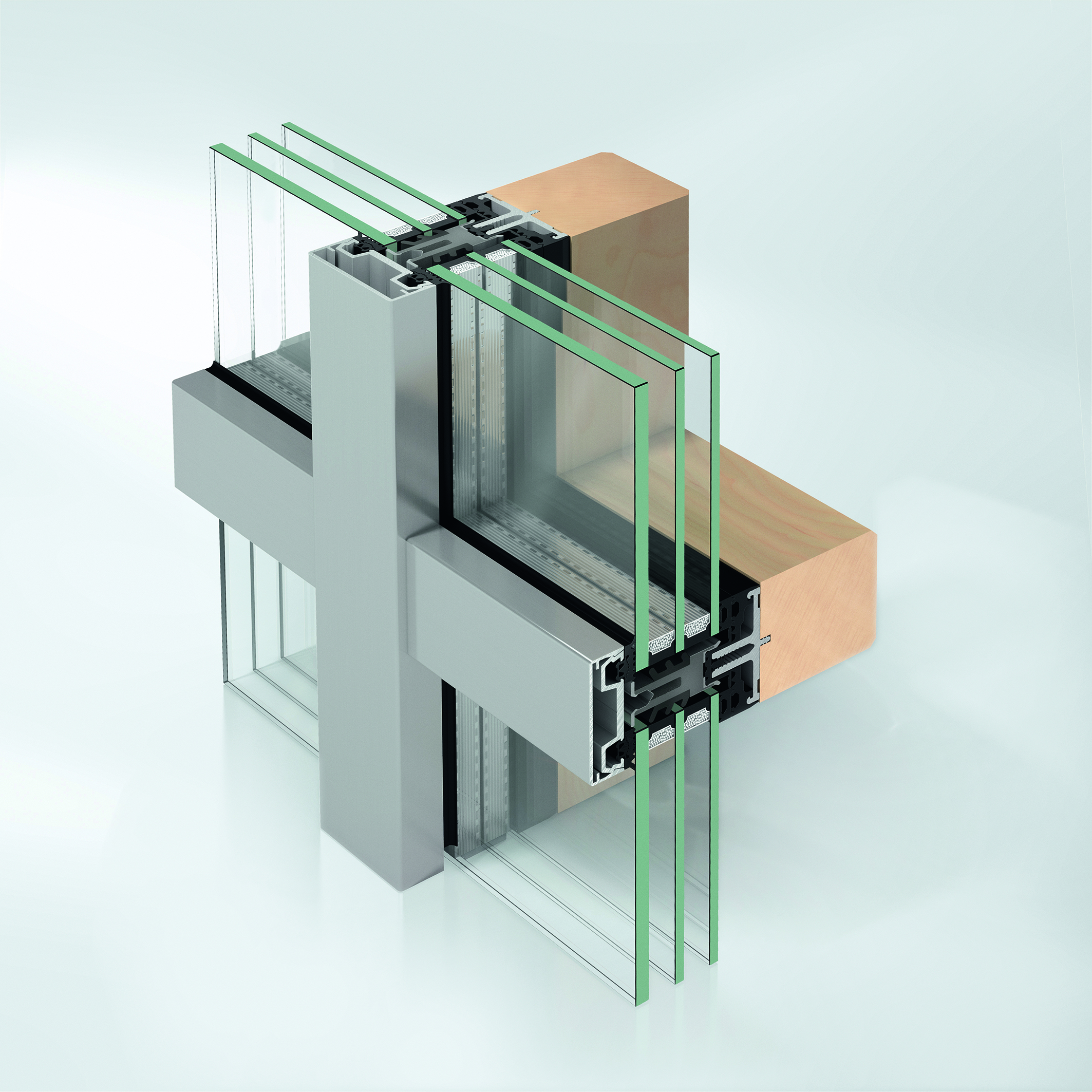 Schüco sieht Nachhaltigkeit als ganzheitliche Herausforderung, als Verpflichtung und Antrieb zugleich und orientiert sich an den Bedürfnissen seiner Kunden. Auf dieser Basis entwickelt das Unternehmen seine Produkte, um einen aktiven Beitrag für nachhaltiges Bauen zu leisten. Die Aufsatzkonstruktion Schüco AOC.TI (Add-On-Construction, Timber) beispielsweise bedient den Wunsch eines vermehrten Einsatzes der nachwachsenden Ressource Holz und vereint zugleich innovative Technologie und maximale Gestaltungsfreiheit für zeitgemäße Architektur. Die nach dem Cradle to Cradle Certified® Products Programm in Silber zertifizierte Konstruktion ermöglicht eine hohe Tragkraft bei gleichzeitig schmalen Ansichtsbreiten. Vielfältige Blendrahmen-Varianten decken Unterkonstruktionen in 50, 60 und 75 mm Ansichtsbreite ab und erzeugen ein harmonisches Erscheinungsbild für Vertikalfassaden und Lichtdächer. Dank einer einheitlichen Dichtung für Pfosten und Riegel reduzieren sich Planungs-, Logistik und Einkaufsaufwand. Das minimiert Fehlerquellen bei optimaler Zeit- und Kosteneffizienz.