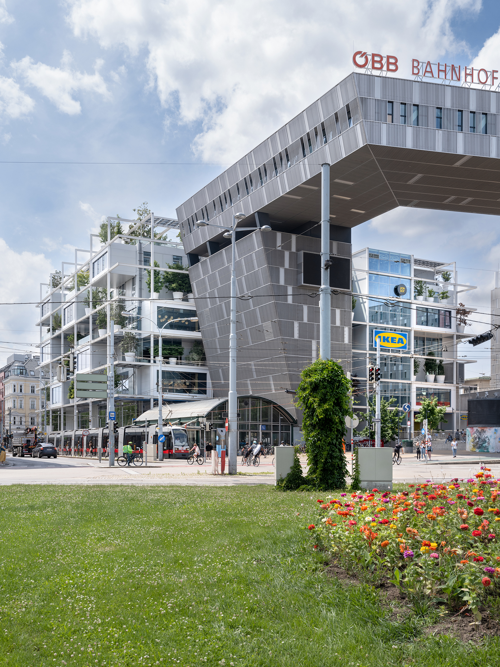 Als „guter Nachbar“ wollte sich der schwedische Möbelhersteller IKEA mit seinem Store am Wiener Westbahnhof präsentieren. Für die Planung des knapp 30.000 m2 großen Neubaus hieß dies: Gewünscht war keine der sonst üblichen, hermetisch abgeschlossenen „blauen Boxen“ des Bauherrn, sondern ein offenes, urbanes und zukunftsgewandtes Haus. Es galt, Präsenz zu zeigen in dem neuen Büro- und Einkaufsquartier, das in den letzten Jahren rund um den historischen Kopfbahnhof entstanden ist – eine Präsenz, die sich vor allem auf Architekturqualität stützt und weniger auf plakative Farbgebung und übergroße Logos. 2017 lobte der Konzern daher einen mehrstufigen Architektenwettbewerb aus, in dem das Wiener Büro querkraft Architekten den Sieg davontrug. Vier Jahre später wurde der Neubau in Betrieb genommen.