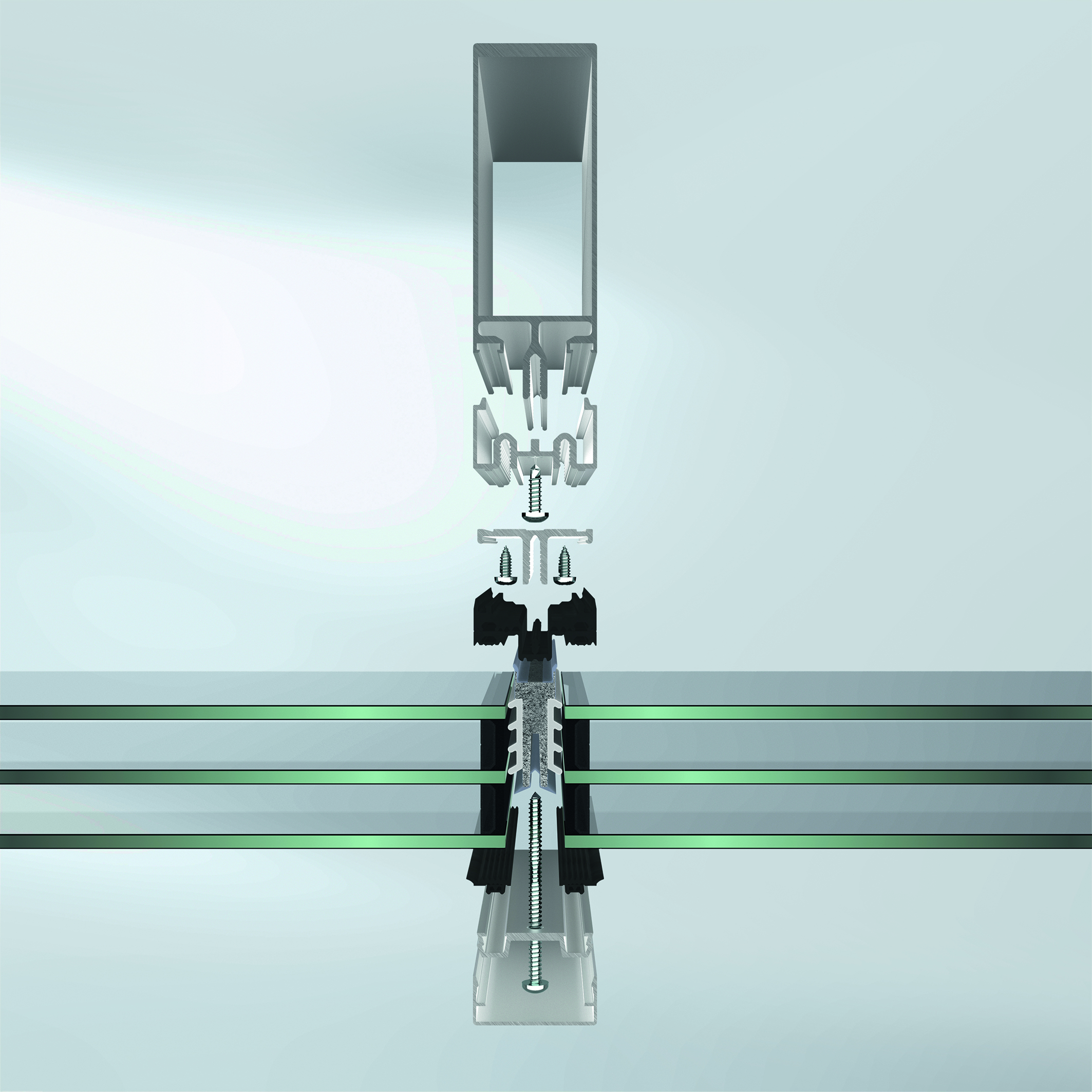 Neben Fenstern können auch Pfosten-Riegel Fassaden ertüchtigt werden, mit Schüco AOC Reno. Dafür wird die alte Tragstruktur (Schüco oder Fremd-System) mit Hilfe von Adapterprofilen mit der Aufsatzkonstruktion Schüco AOC, inkl. einer komplett neuen Dicht- und Dämmebene, überbaut. Dadurch ist kein Rückbau der Altfassade nötig, sondern eine Umsetzung im laufenden Betrieb möglich. Die Innenraum-Wandanschlüsse bleiben unberührt – wie bei allen minimalinvasiven Ertüchtigungslösungen von Schüco.