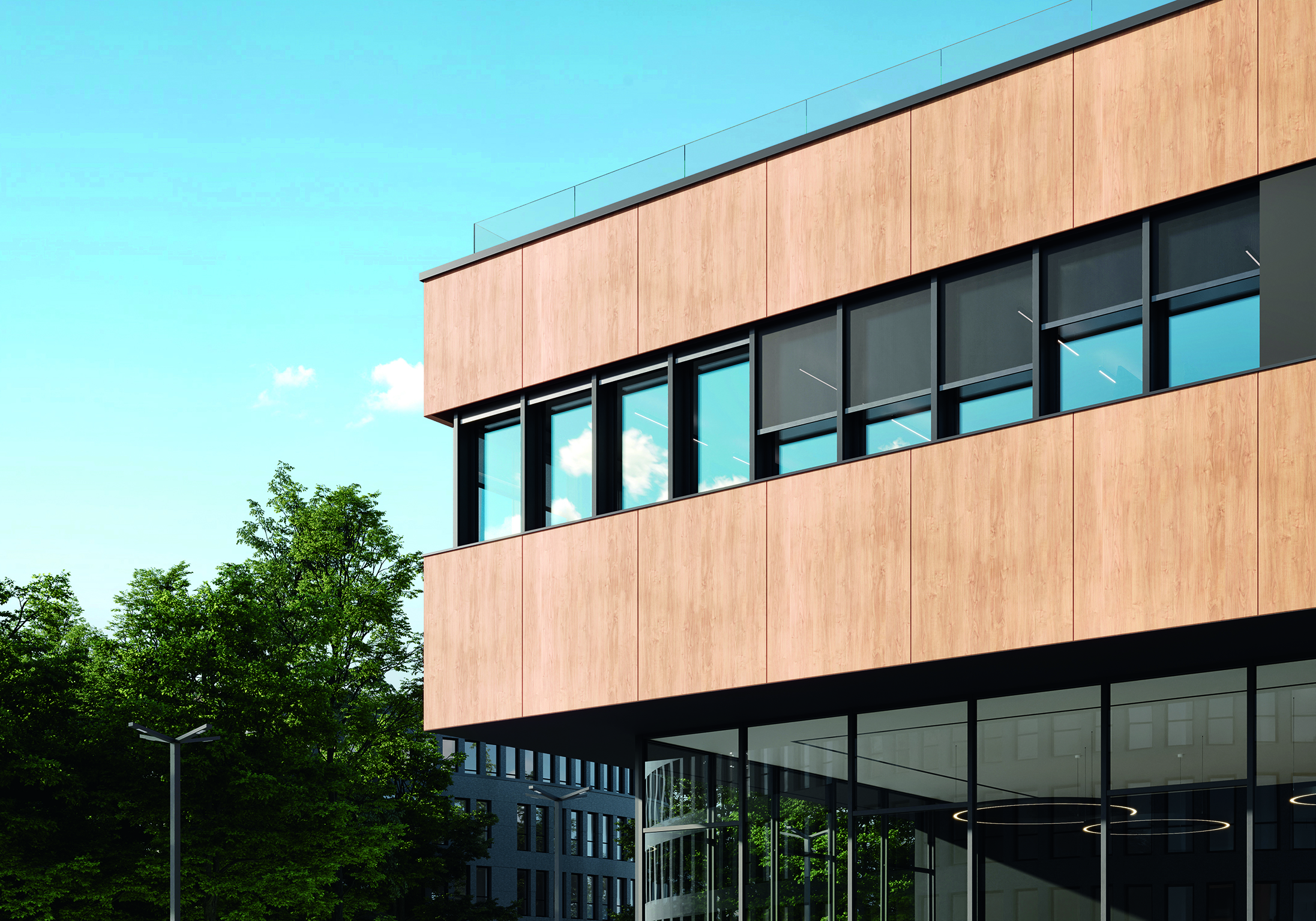 Bisher ließen sich das Schüco Fenstersystem aus Aluminium in 75 mm Bautiefe (System AWS 75.SI+) und das Schiebesystem Schüco ASE 60/80.HI (Aluminium Sliding Element) als Schüco Perfect Element gestalten. Um die Planungs- und Montageeffizienz von Fensterbandlösungen zu erhöhen, stellt der Gebäudehüllenspezialist aus Bielefeld jetzt auch die Schüco AWS 75.SI+ Perfect Fensterbandlösung vor. Anders als bei der Einzelausführung werden bei der Fensterbandlösung die adaptiven Schüco Perfect Add-On Komponenten in einer umlaufenden Aufnahmenut des Aluminiumfensters geführt. Das hat den Vorteil der Material- und Gewichtsreduktion – auch im Hinblick auf die Statik. Erstmals auf der BAU 2025 zu sehen, wird das Schüco AWS 75.SI+ Perfect Fensterband voraussichtlich Ende des Jahres verfügbar sein.
