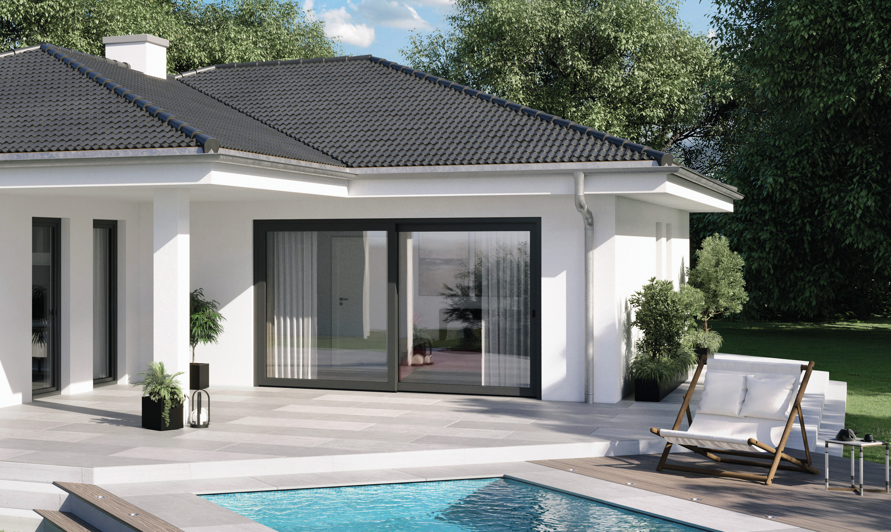 (pressebox) (Bielefeld/Weißenfels, Germany, 14.02.2025) A lift-and-slide door that immediately provides a higher quality of living in every modernisation project: The Schüco EasySlide – New Generation impresses in a variety of installation scenarios and stands out with generous glass areas, better thermal insulation and different opening types. The use of identical parts, the removal of additional machining for the roller carriages and profile lengths that have been optimised for cutting make fabrication efficient and economical.