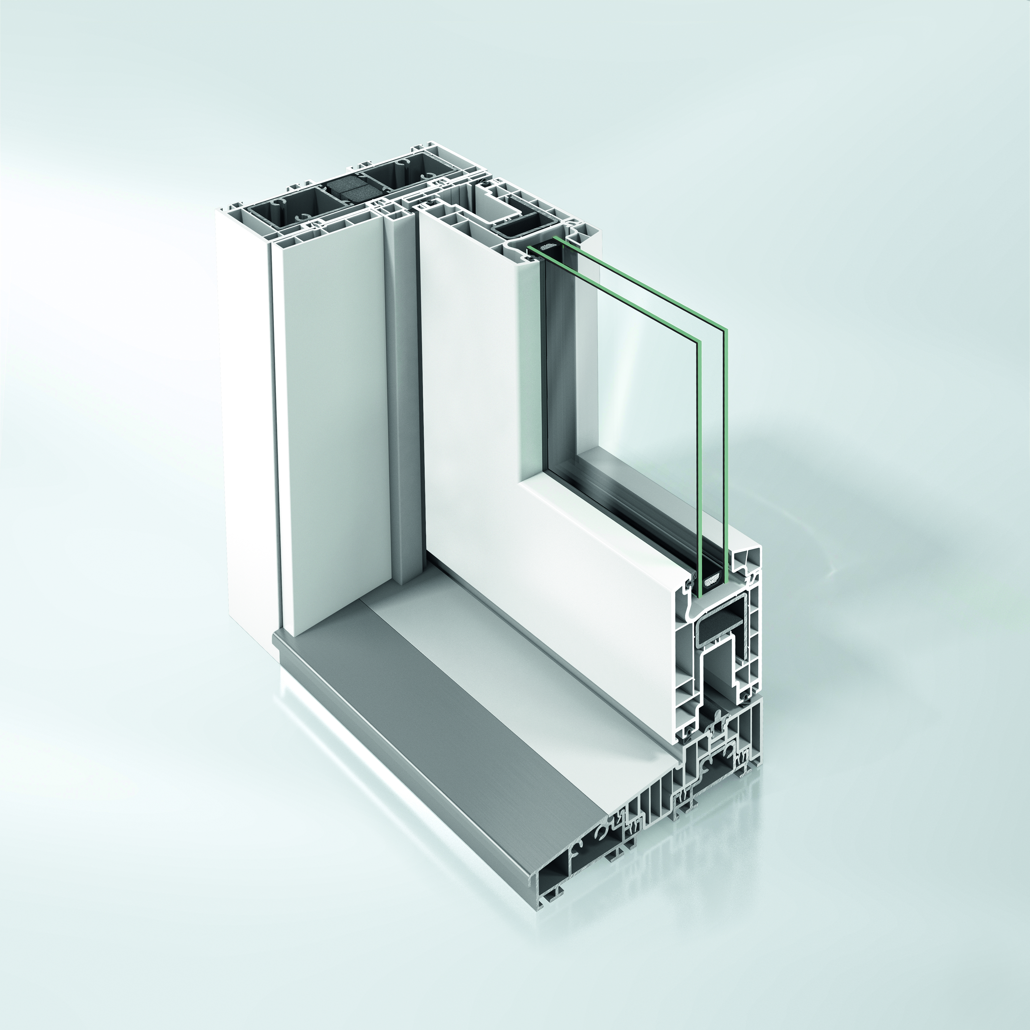 With two, three or four vents, an intermediate or continuous threshold, and double or triple glazing. The newest generation of Schüco EasySlide presents a variety of individual configurations and, compared to the previous version, it offers improvements in the key areas of thermal insulation and security. In addition, many of the details in the lift-and-slide door such as gaskets, corner areas and geometric elements have been further developed, improving the durability of the system even more. The Schüco EasySlide – New Generation now achieves an average Uf value of 1.47 W/(m2K) in the standard design version and can be implemented with burglar resistance up to RC2. The optimised thermal insulation improves the CO2 impact of the building, which can also be reduced by using bio-attributed PVC. With bio-attributed PVC, the raw material crude oil is replaced by tall oil, which is a secondary product of paper production. This is a renewable, non-fossil raw material from pine trees that does not compete with the food chain. In the PVC manufacturing process, compared to primary PVC from the same producer, up to 90 percent of CO2 can be saved. The process is RSB and ISCC PLUS certified, which means that the raw material can be traced along the entire supply chain from the paper producer to the production facility in Weißenfels, which is verified annually by means of an external certification process. The use of bio-attributed PVC also means that the certification requirements for quality level 4 of the German Sustainable Building Council (DGNB) can be met.