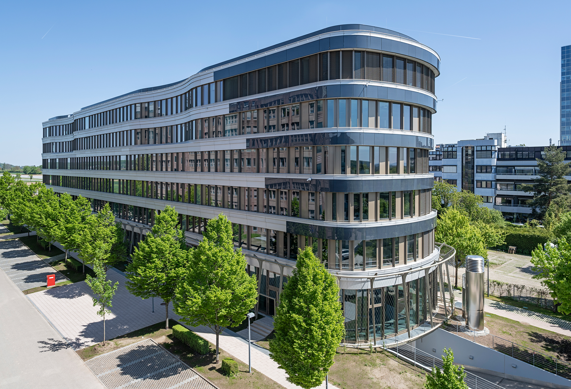 Das Z2 ist ein markantes Bürogebäude im Südwesten von Stuttgart. Der 94 mal 12 Meter messende, sechsgeschossige Baukörper besticht durch seine fließenden Formen und die charakteristische Schichtung aus Glas und Aluminium. Das Bauwerk gehört zum ZÜBLIN-Campus, dem zentralen Management- und Innovationsquartier des Bauunternehmens. ZÜBLIN selbst ist Teil des weltweit tätigen STRABAG-Konzerns, dessen Ziel es ist, bis 2040 klimaneutral zu werden.