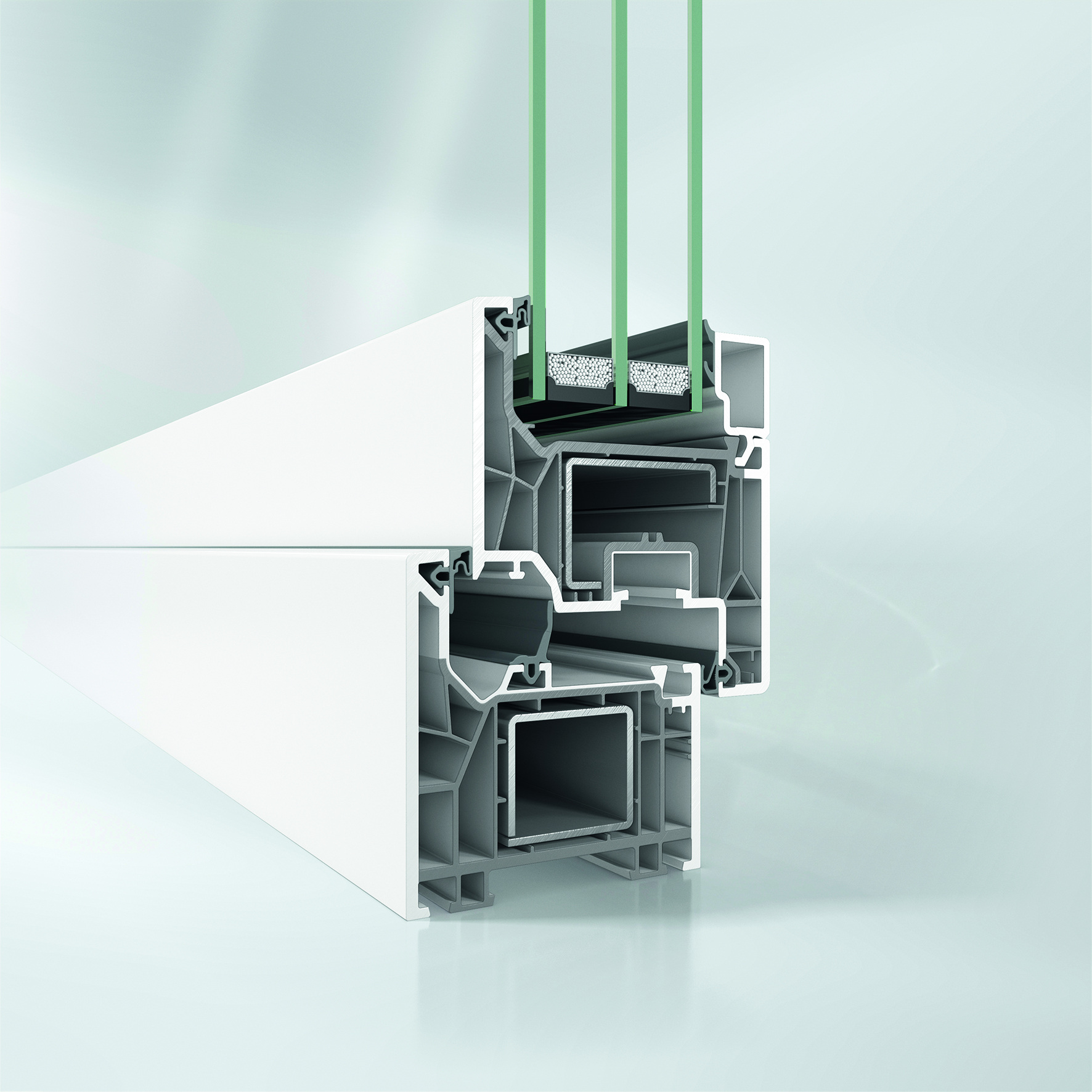 Der Bereich „Gewerblicher Wohnbau“ fokussiert den materialübergreifenden, mehrgeschossigen Wohnbau für die Sanierung und den Neubau. Auf dem Messestand ist dafür u. a. eine werkstoffübergreifende Inszenierung zu sehen, die für eine optische Verschmelzung von Material und Funktion steht und praxisgängige Elementkombinationen aus Kunststoff und Aluminium in diesem Marktsegment visualisiert.