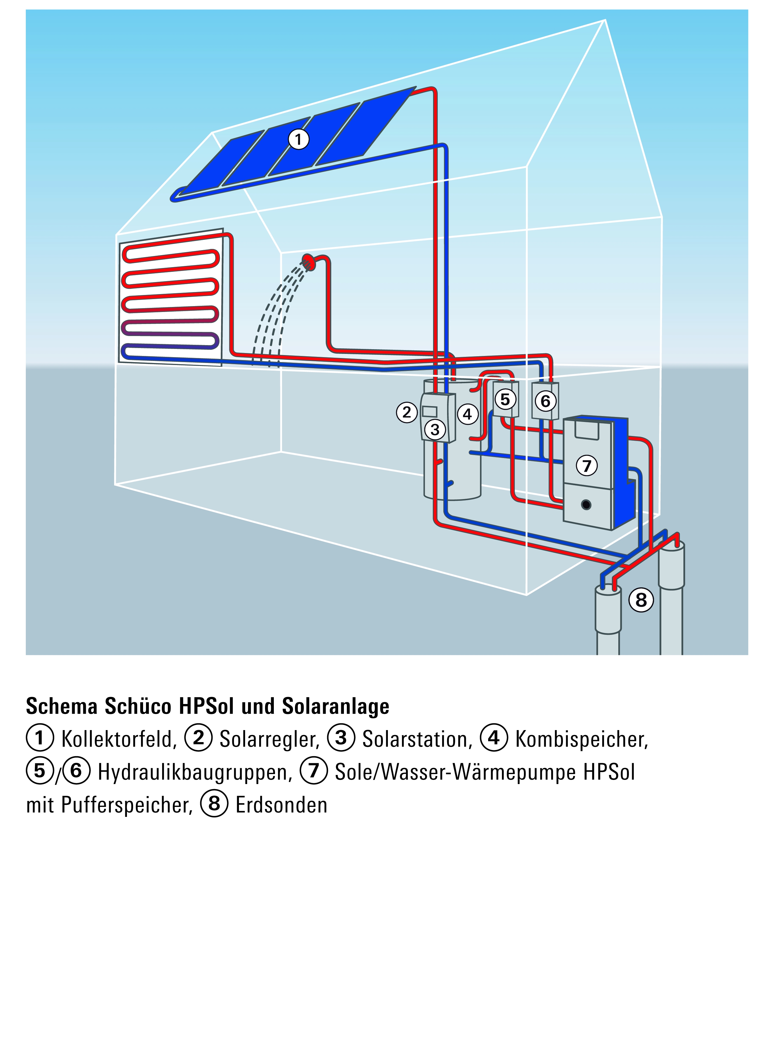 Eine vierköpfige Familie, ein KfW 60-Haus im Neubaugebiet und eine Wärmepumpe HPSol als Heizsystem: so sah der „Versuchsaufbau“ der Schüco Techniker aus, die das System ein Jahr lang auf Herz und Nieren prüften. Das Haus wird allein von der solarunterstützten HPSol 5 beheizt, die mit ihrer aktiven Erdreichkopplung für eine dauerhafte Regeneration des Temperaturniveaus in der Erde sorgt. Die dazugehörige Solaranlage besteht aus vier so genannten Tieftemperaturkollektoren, die auch bei geringen Temperaturen genügend Sonnenenergie einfangen.