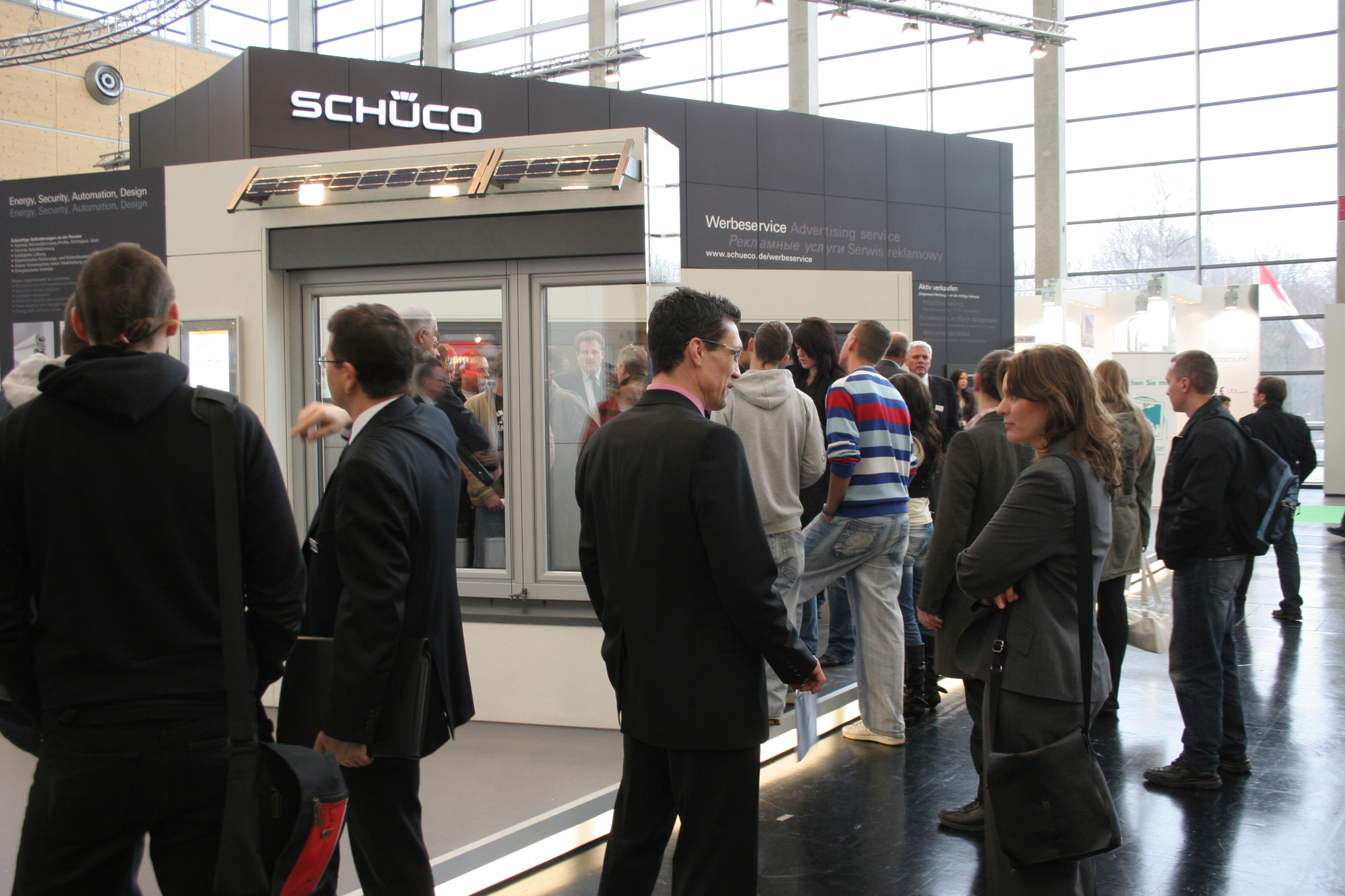 Schüco präsentierte mit einem klar gegliederten Standkonzept seine Leitthemen der Zukunft. Viel beachtet wurde hierbei ein Kunststoff-Fenster mit differenzierten Vorzügen: höchste Wärmedämmung, integrierte Lüftung mit Wärmerückgewinnung, Schall- und Einbruchschutz, Sonnen- und Blendschutz, Tageslichtnutzung und sogar Stromgewinnung. Das große Interesse des fachkundigen Publikums an diesem Exponat zeigt, dass das Unternehmen in den zukunftsweisenden Bereichen Energie, Sicherheit, Automation und Design gut aufgestellt ist.