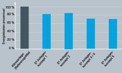 Eine zunehmend wichtigere Planungsgröße im Objektbau stellen die zu erwartenden Betriebskosten im Lebenszyklus einer Immobilie dar. Energie sparende Gebäudetechnik kann einen wichtigen Beitrag zur langfristigen Rentabilität des Objektes leisten - im Falle der dezentralen Lüftungstechnik sind gegenüber herkömmlicher Klimatisierung je nach Anlagenkonzept zwischen 20 und 30 Prozent Energiekosten-Einsparungen realisierbar (vgl. Grafik Abb. 2).