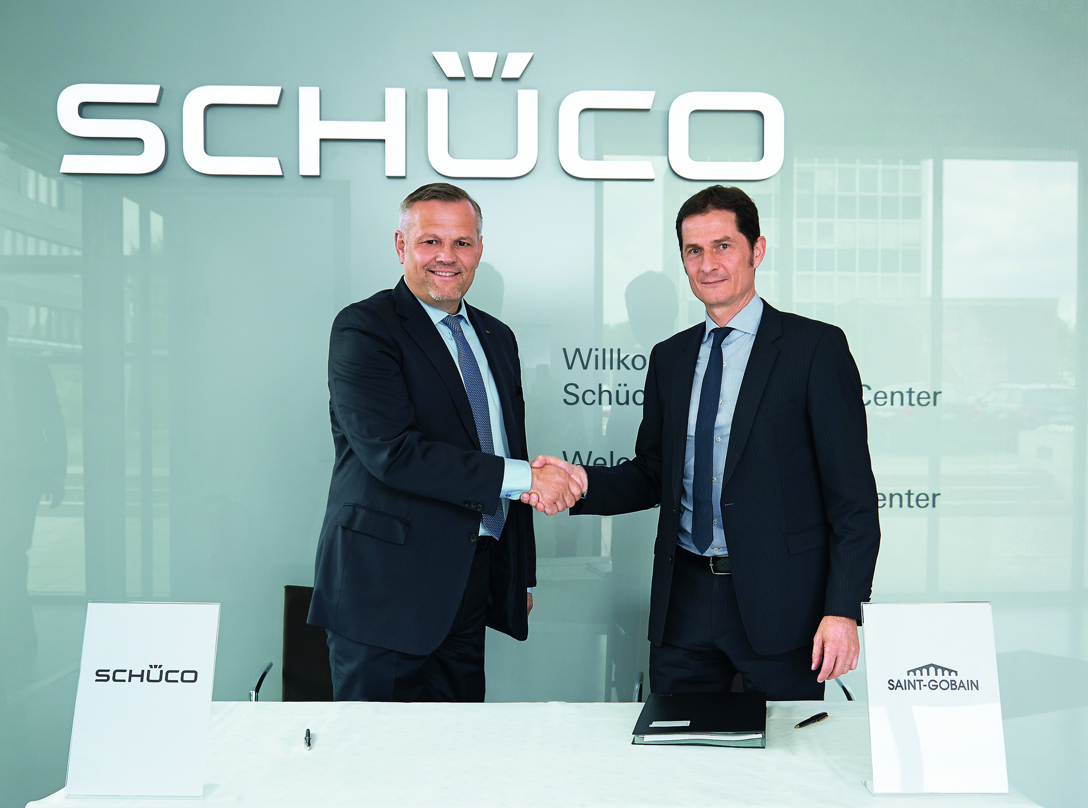 (pressebox) (Bielefeld, 02.07.2015) Dynamisches Glas, das sich zur Steuerung von Sonnenlicht und Wärme tönen lässt, wird schon in naher Zukunft integraler Bestandteil sein, wenn es darum geht, ideale Wohn-, Arbeits- und Lebensräume zu schaffen. Davon sind Guillaume Le Gavrian - CEO der Vetrotech Saint-Gobain International AG und hauptverantwortlich für den Vertrieb von SageGlass® - aus Flamatt und Andreas Engelhardt, geschäftsführender und persönlich haftender Gesellschafter der Schüco International KG aus Bielefeld, überzeugt. Sie unterzeichneten in Bielefeld einen Kooperationsvertrag mit der Intention, diese innovative Technologie in Deutschland zu etablieren.