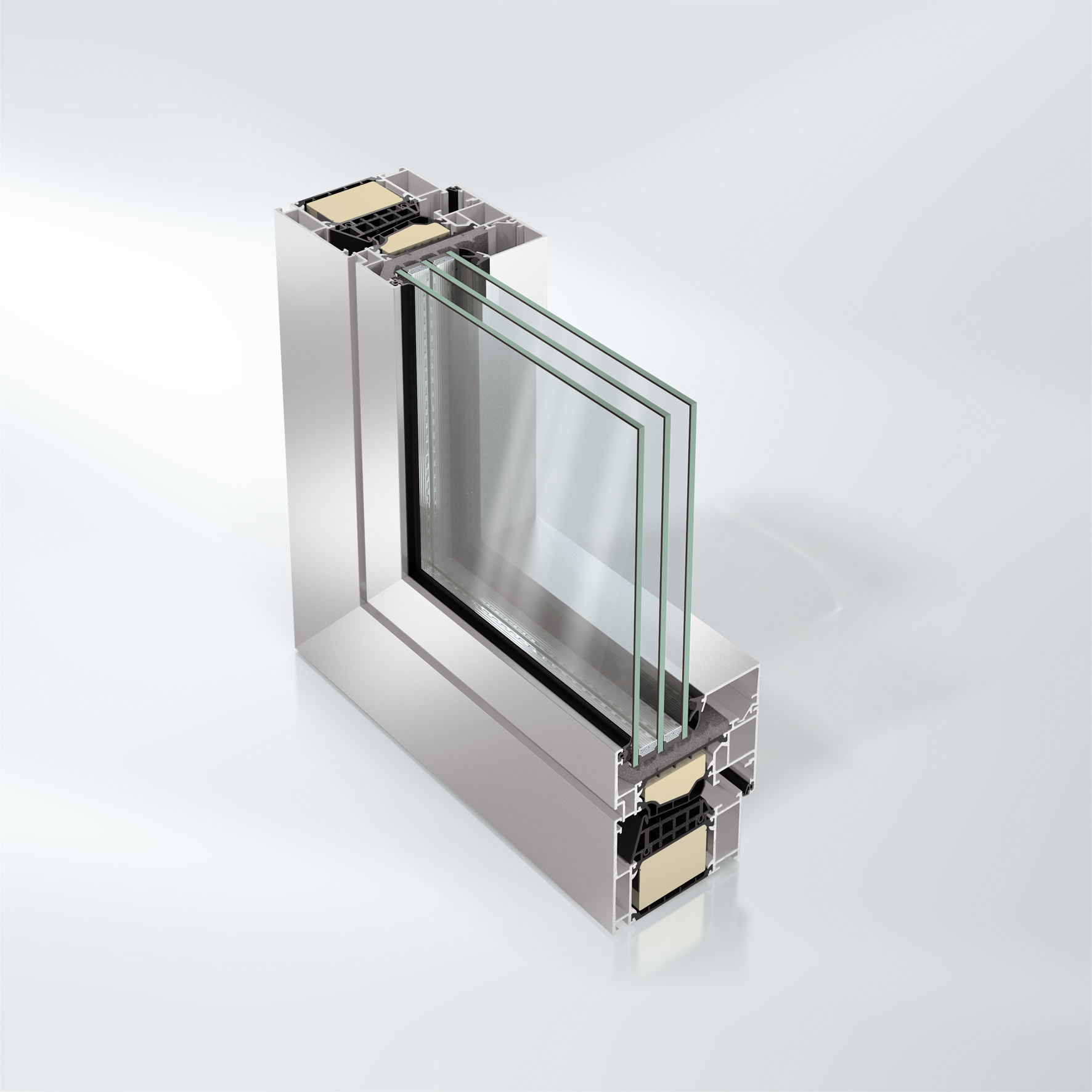 Diese innovative Schaumtechnologie wird optional im Blendrahmen bzw. im Pfosten-Riegel-Profil eingesetzt, während der Flügelrahmen weiterhin unverändert bleibt. So erreicht das Aluminium-Fenster Schüco AWS 90.SI+ in Verbindung mit einer Dreifachverglasung (Ug = 0,70/(m2K)) bei einem Fenstermaß von 1,23 x 1,48 m den geforderten Zielwert für die Zertifizierung in Höhe von Uw ≤ 0,80 W/(m²/k) für die relevante Profilkombination. Im eingebauten Zustand wird unter Berücksichtigung möglicher Wärmebrücken ein Wert von