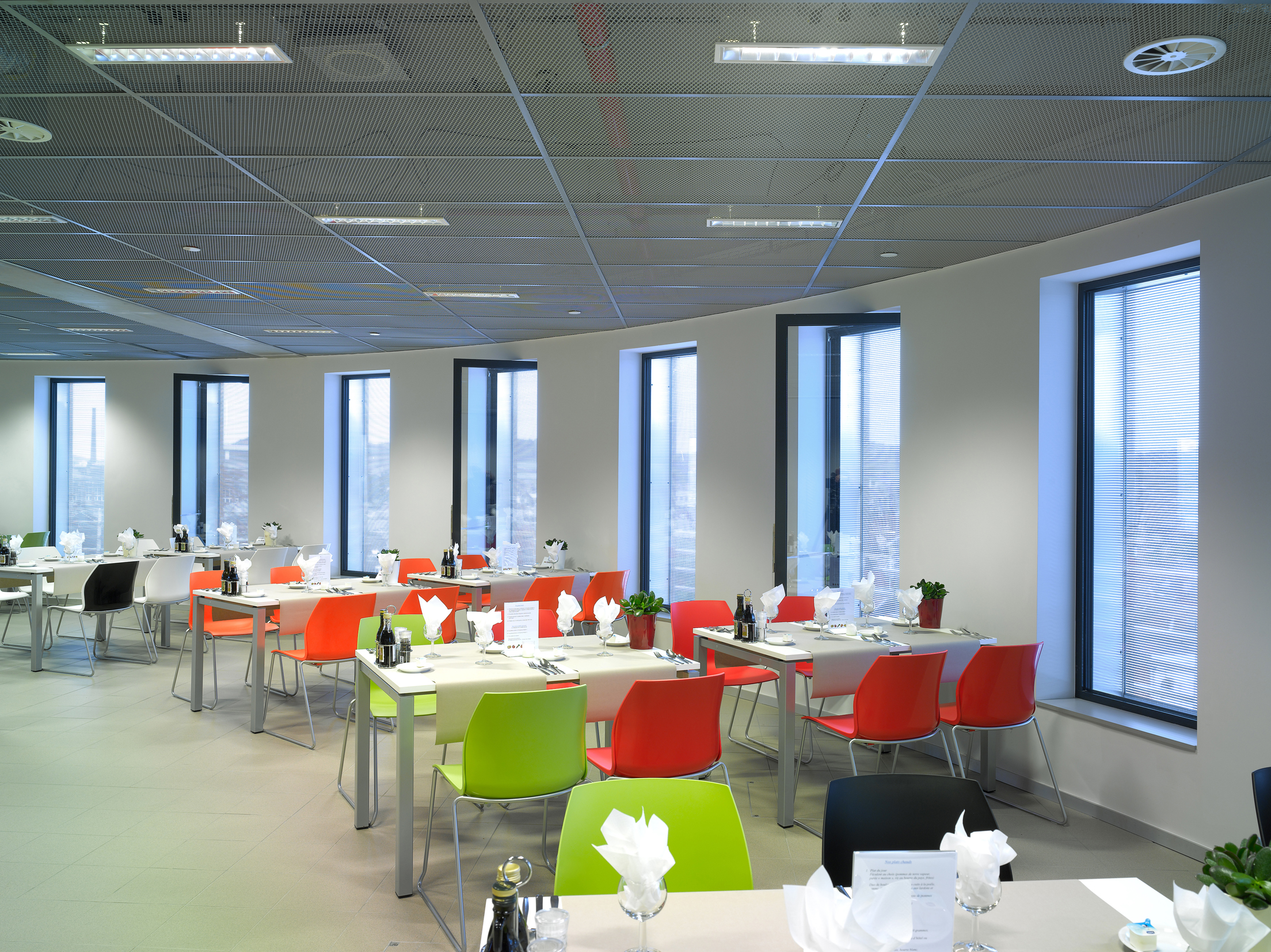 Der Schüco Sonnenschutz CTB (Concealed Toughened Blind) ist Bestandteil eines jeden Fensters. Er erfüllt in diesem Projekt einen doppelten Zweck: tagsüber den des Sonnenschutzes und nachts den des Fensterschutzes während der Nachtlüftung.