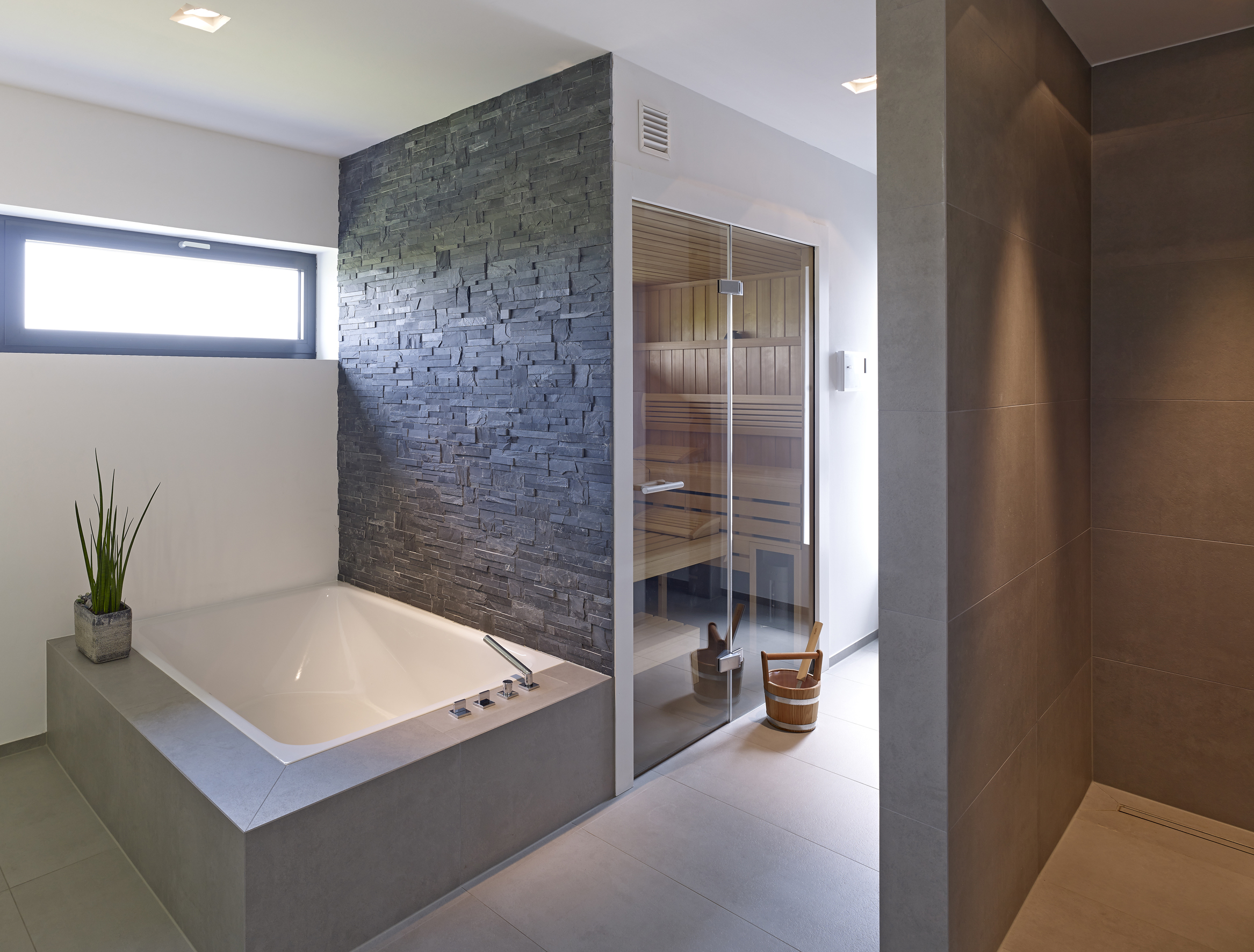 Das Obergeschoss zeigt eine klare Trennung zwischen Eltern- und Kinderbereich und integriert einen großzügigen Bad- und Saunabereich sowie separate Schlaf- und Sanitärräume für die Kinder. Weitere Rückzugsmöglichkeit bietet ein Studio im oben angrenzenden Staffelgeschoss - durch eine umlaufende Dachterrasse können Sonne und Ausblick dort zu jeder Tageszeit genossen werden. Haustechnik und Wirtschaftsraum sind im Keller untergebracht, der nebenbei noch ein großes Spielzimmer sowie ein Gästezimmer mit eigenem Bad bietet.