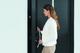Eine zutrittsberechtigte Person erhält Einlass, indem Sie per Wischtechnik von den Klingeltastern zur Code-Tastatur wechselt. Jetzt gibt sie ihren individuell hinterlegten Zahlencode ein und erhält Einlass. Das DCS Touch Display lässt auch eine nach Uhrzeiten oder Wochentagen zeitabhängige Zutrittsverwaltung zu – beispielsweise für Dienstleister, die das Gebäude nur zu definierten Zeiten betreten sollen.