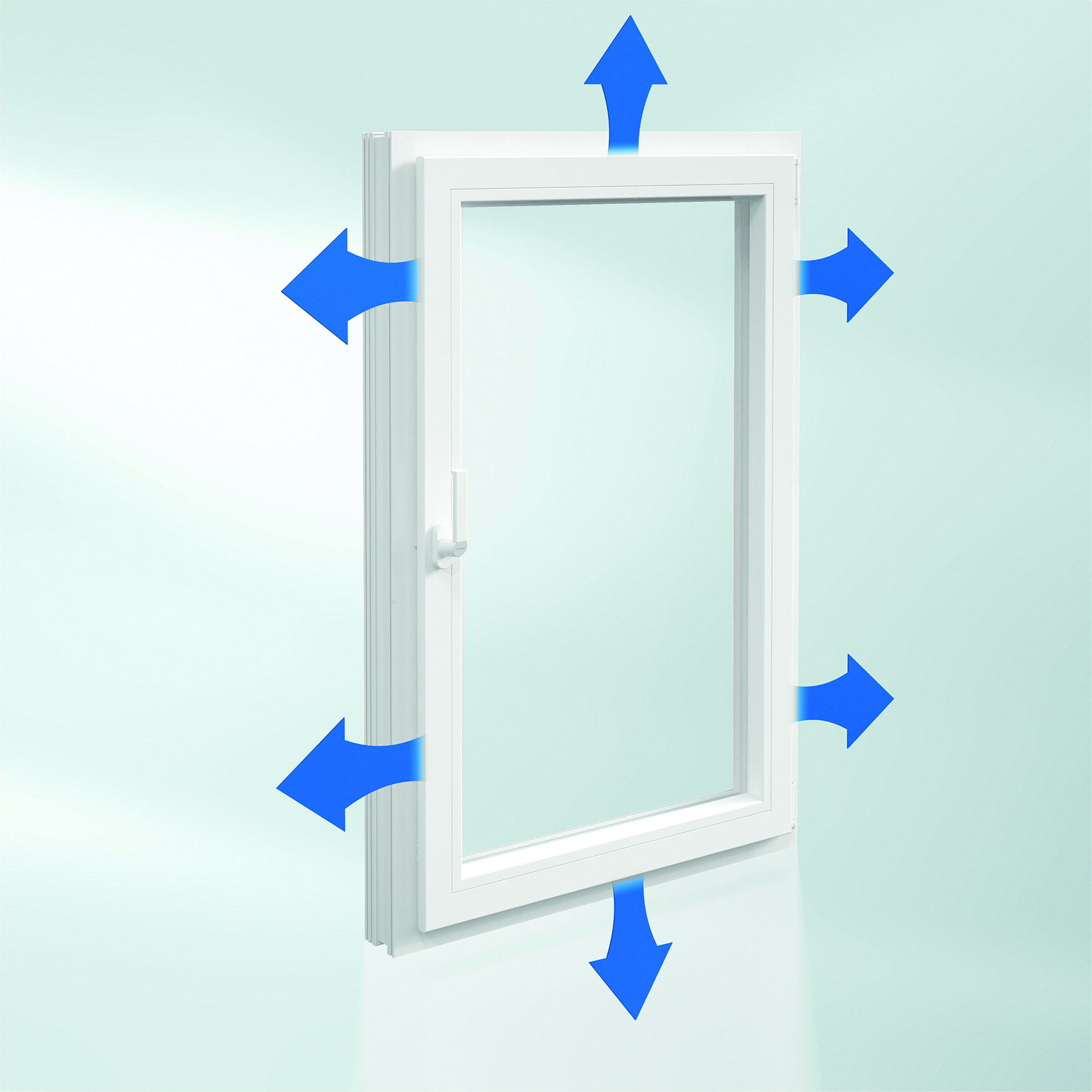 Ein mit dem Schüco VarioTec Air ausgerüstetes Schüco Kunststoff-Fenster bietet zwei Öffnungsvarianten. Zur schnellen Stoßlüftung steht die bekannte Drehfunktion zur Verfügung. Für die langsamere, aber dafür gleichmäßigere Frischluftzufuhr lässt sich der Fensterflügel parallel ca. 6 mm von dem Fensterrahmen abstellen. Die Vorteile – im Vergleich zu einem gekippten Fenster – lassen sich klar definieren: deutlich geringe Energieverluste sowie ein besserer Insekten-, Lärm-, Regen- und sogar Haustierschutz. Beispielsweise können sich Katzen, die oftmals durch ein gekipptes Fenster nach draußen gelangen wollen, jetzt nicht mehr verletzen.