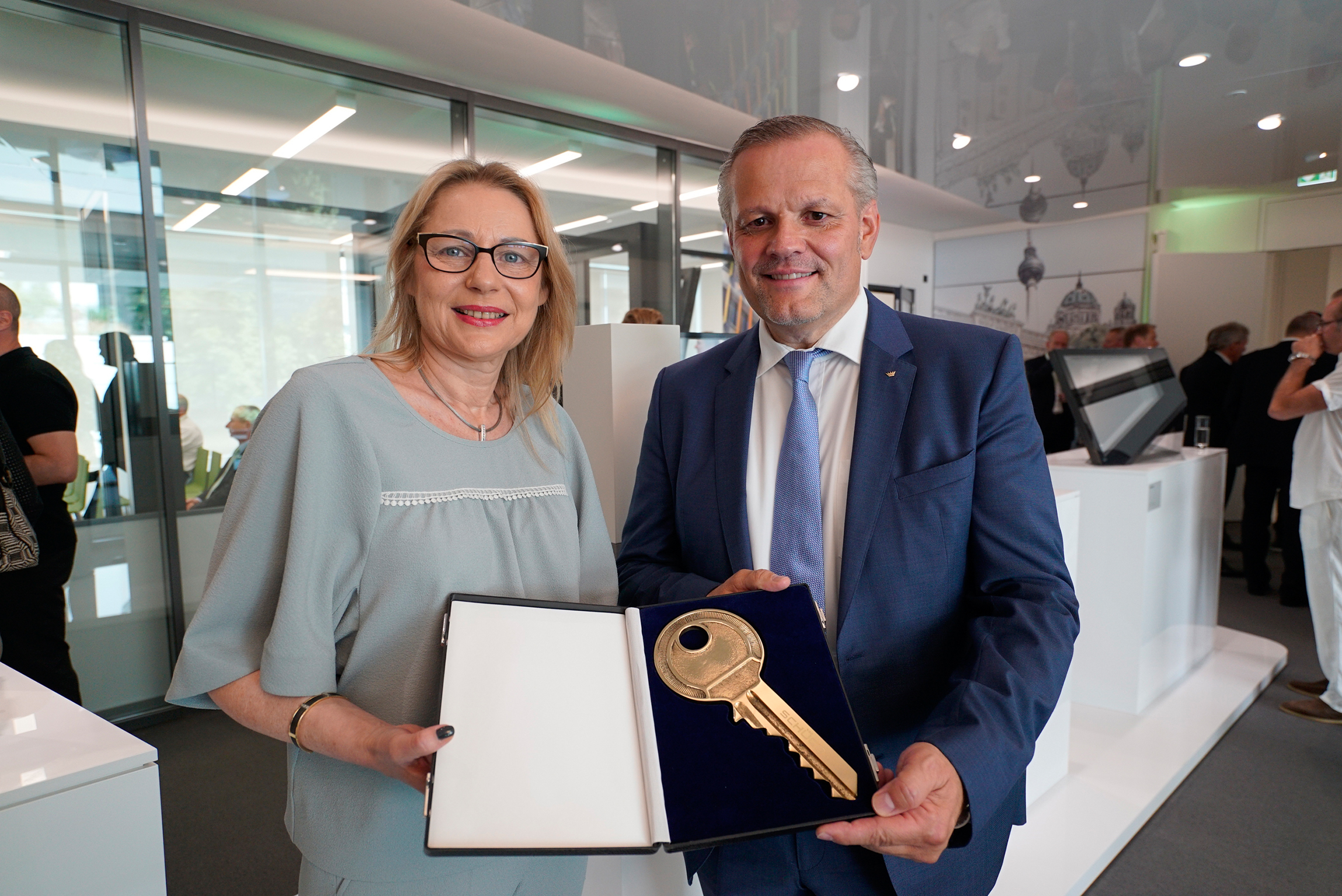 Bereits am 24. Juni 2016 wurde in Berlin die neue Hauptstadtrepräsentanz von Schüco im Beisein der Berliner Senatorin für Wirtschaft, Technologie und Forschung, Cornelia Yzer, feierlich eröffnet. In der Schlüterstraße 40, in unmittelbarer Nähe des Kurfürstendamms, wurde das Konzept einmal anders umgesetzt: Auf 265 m² verschmelzen Showroom und Büro. Klassische Bürotrennwände gibt es beispielsweise nicht, stattdessen sind die Besprechungsräume mit Pfosten-Riegel-Fassaden errichtet worden. Im Weiteren sind die Büros mit hoch wärmegedämmten Fenster- und Türsystemen sowie Sicherheits- und Automationslösungen ausgestattet. Alles aus der Schüco Produktpalette.