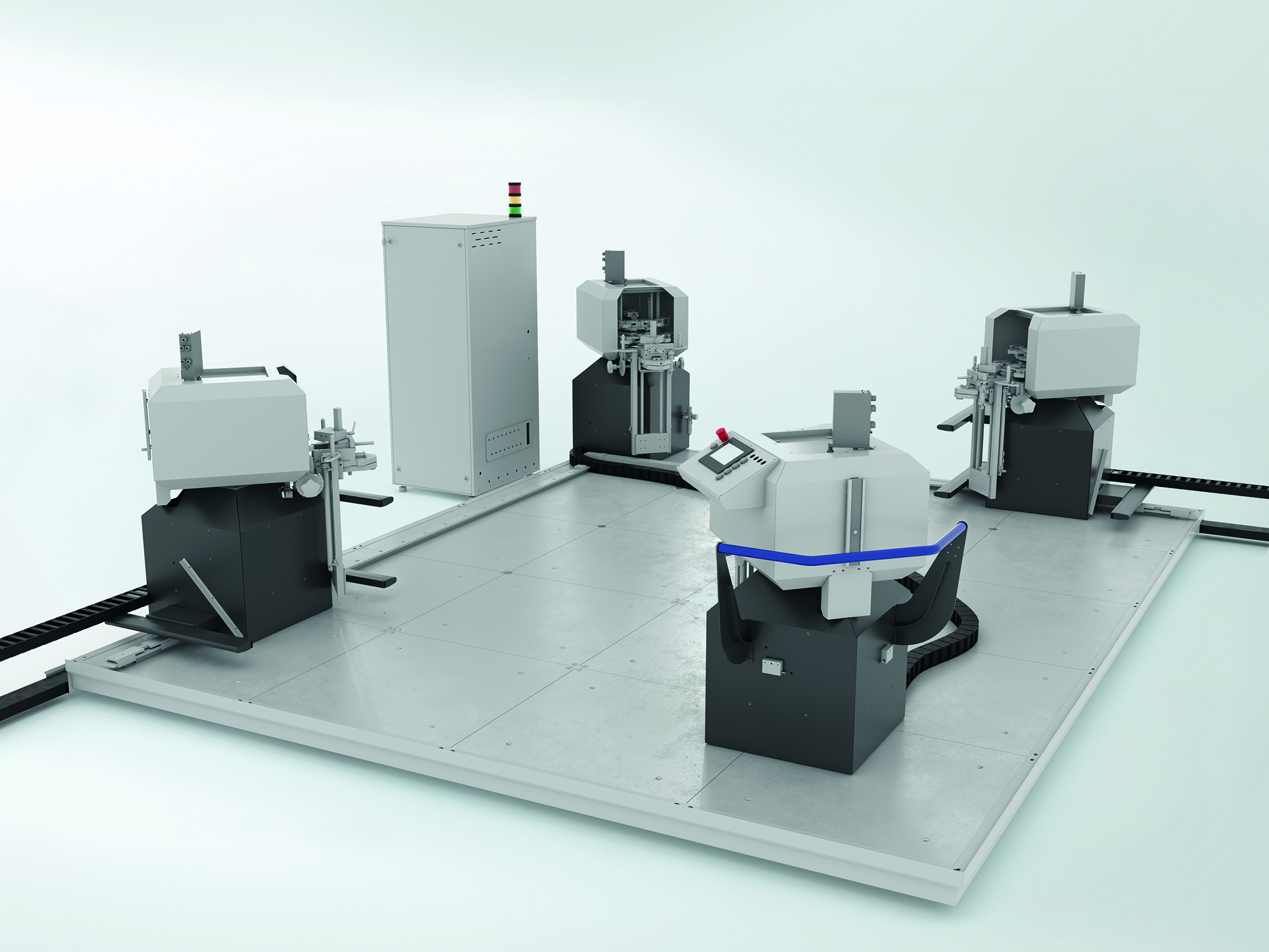 Die gesamte Anlage wurde platzsparend konzipiert und kann zum Beispiel in einer Hallenecke, direkt in einer Fertigungslinie, aufgebaut werden, da kein gesonderter Tisch für das Zusammenstecken des Rahmens mehr nötig ist. Durch das gleichzeitige automatische Stanzen der vier Ecken ergeben sich somit schnelle und prozesssichere Abläufe bei der Rahmenfertigung.