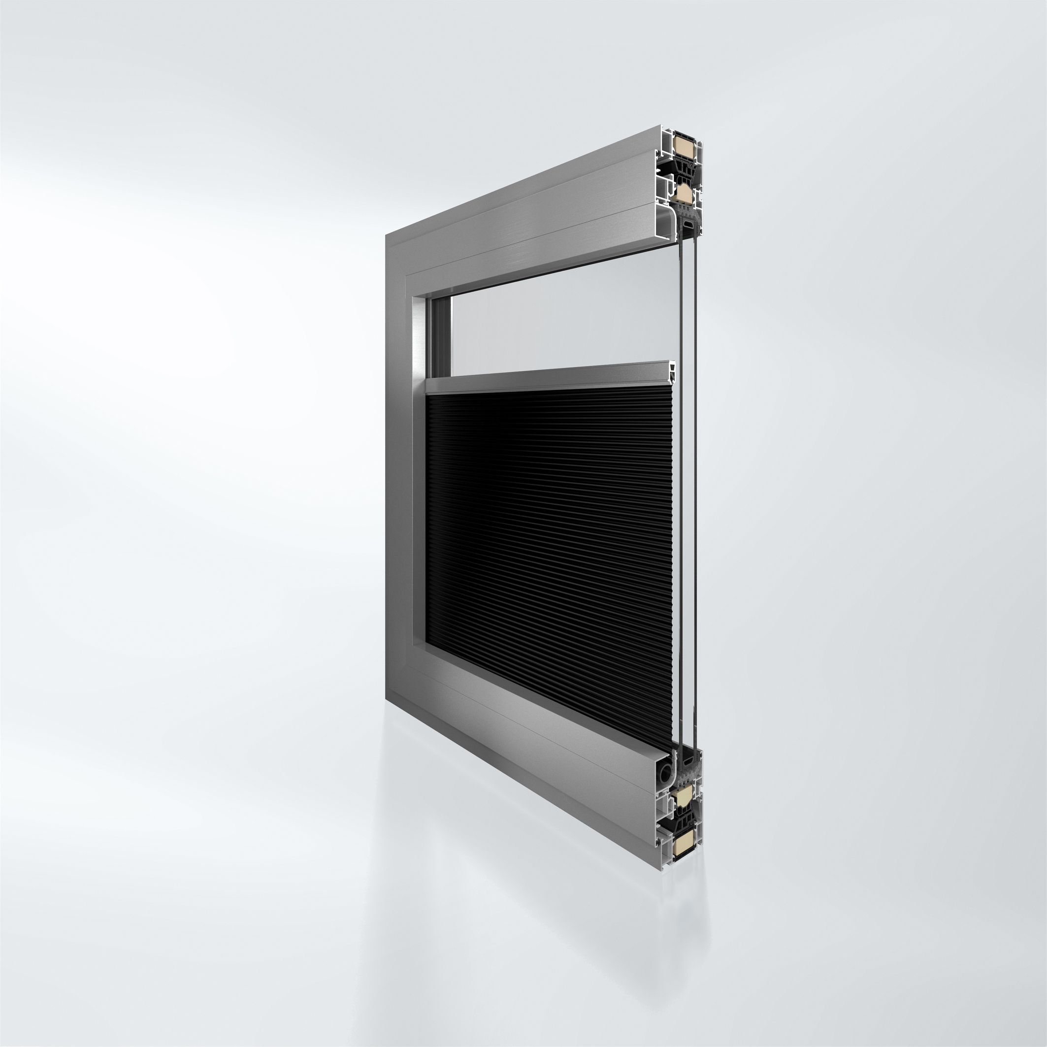 Als verdeckt liegender, glasleistenintegrierter Sonnen- und Blendschutz ist der Behang nur dann sichtbar, wenn er im Einsatz ist. Ansonsten verbirgt er sich mit all seinen Komponenten unsichtbar in der Glasleiste. Der Integralmaster eignet sich für Neubauten und Modernisierungen, da lediglich die „alte“ Glasleiste entfernt und durch das Komplettsystem ersetzt wird. Zwei Bedienvarianten stehen zur Wahl: Bei der elektrischen Steuerung fährt das in der unteren Glasleiste integrierte Rollo mittels SMI-Technik (kompatibel mit vielen BUS-Steuerungssystemen) nach oben. Ist eine mechanische Bedienung vorgesehen, wird das Rollo in die obere Glasleiste integriert und nach unten gezogen.