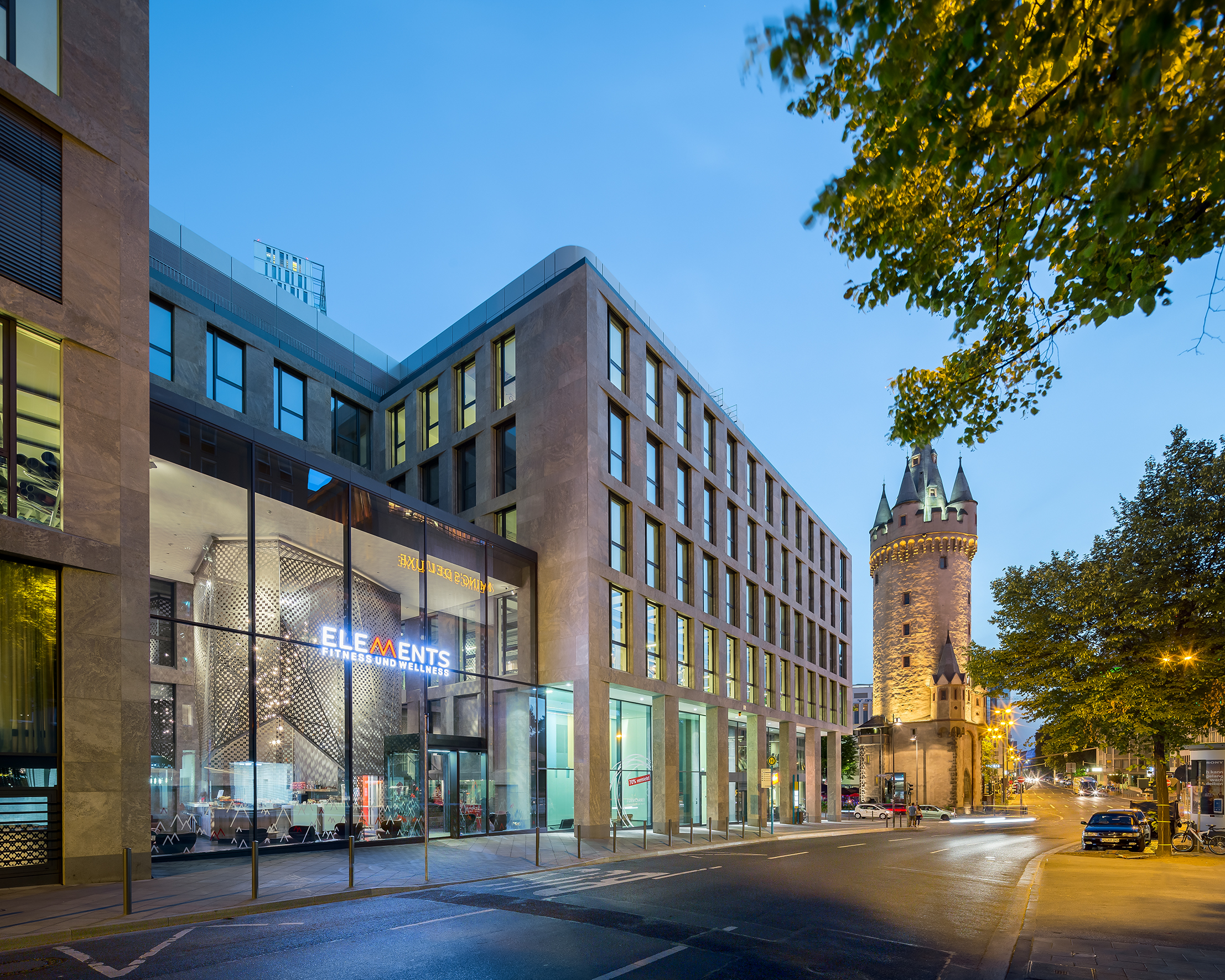 Mit dem TurmCarrée am Eschenheimer Tor erhielt einer der vitalsten Plätze Frankfurts eine neue architektonische Landmarke, die durch ihre Nutzungsvielfalt gekennzeichnet ist. Die Integration der vier Funktionen Arbeiten, Wohnen, Shopping und Fitness/Wellness belebt das TurmCarrée rund um die Uhr an sieben Tagen in der Woche. Dabei stellt die durchdachte optische und räumliche Trennung von Büroflächen und Wohn- und Gewerberaum die erwünschte Orientierung wie auch die Diskretion für die nicht öffentlichen Bereiche städtischen Lebens schlüssig her. Dies gelingt über separate Eingangsbereiche und Erschließungszonen, die Variation in der Fassadengestaltung und die separate Anordnung der einzelnen Funktionsflächen.