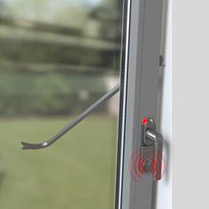 Schüco SoundGuard Glasbruchmelder und Fensteralarm sind wirksame Module, mit denen sich bereits eingebaute Schüco Kunststoff-Fenster leicht nachrüsten lassen. Beide Module melden unberechtigte Zutrittsversuche durch lauten akustischen Signalton von 100 Dezibel: Der Glasbruchmelder bei Erschütterung der Glasscheibe und der zwischen Rahmen und Griff eingesetzte Fensteralarm beim Aufhebelversuch. (Abb. 26, 27)