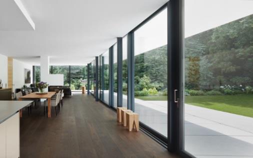 Schiebesysteme aus Aluminium ermöglichen raumhohe und großzügig dimensionierte Glaselemente mit schmalsten Profilansichten in unterschiedlichen Bautiefen, Farben und Wärmedämmwerten. Für die leichte und komfortable Bedienung der Schüco Schiebesysteme aus Aluminium stehen je nach Konstruktion manuelle oder mechatronische Beschläge zur Verfügung, die Flügelgewichte bis zu 500 kg bewegen. Verriegeln, schließen und öffnen lassen sich die mechatronischen Schiebetüren beispielsweise per Knopfdruck über ein Bedienboard am Flügel oder einen Raumtaster. Eine Öffnungs- und Verschlussüberwachung mit Rückmeldefunktion hilft, die Schiebeelemente zu kontrollieren. Das Überwachungssystem lässt sich in Gebäudeautomationssysteme einbinden und mit Einbruchmeldeanlagen kombinieren.