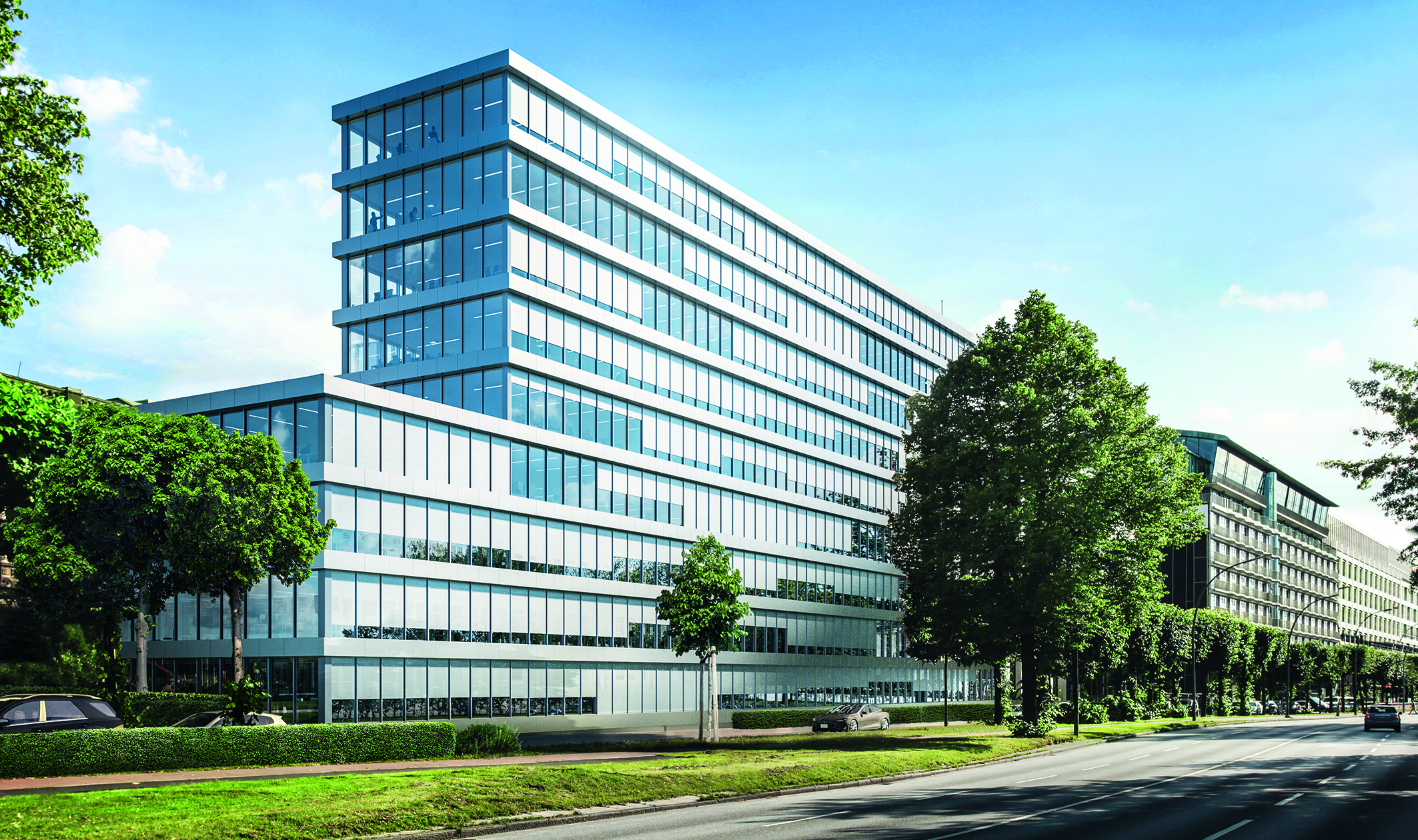 Als komplett in das Schüco Fassadensystem FWS 50/60 integrierter, außen liegender Sonnenschutz bietet der Schüco CSB eine Verschattungslösung, die an sonnenreichen Tagen den Wärmeeintrag in das Gebäude stark reduziert. Dies gilt auch bei Tagen mit starker Windbelastung: Der rollbare Sonnenschutz hält Windgeschwindigkeiten von bis zu 25 m/s (Windstärke 9 – 10 auf der Beaufortskala) stand. Dies ist den stranggepressten Aluminiumlamellen zu verdanken, die stabil in den deckschalenintegrierten Führungsschienen stehen. Die hohe Transparenz von 23 Prozent wird durch die Kombination von Lamellenkontur und Lamellenstanzungen erreicht. Eine vollständige Abschattung direkter Sonneneinstrahlung erfolgt ab einem Sonnenstandswinkel von 21 Grad. Der Behang ist in den Eloxaltönen C0 und von C31 bis C35 lieferbar und kann sich damit optimal in das äußere Design eines Gebäudes einfügen oder farbliche Akzente setzen.