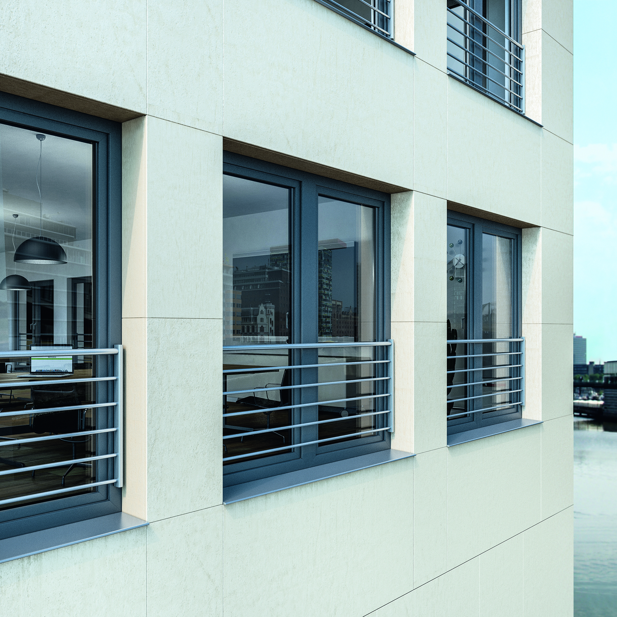 Schüco Absturzsicherungen für Kunststoff-Systeme sind für Neubauten und Modernisierungen geeignet. Sie finden ihren Einsatz an bodentiefen Fensterelementen, die für lichtdurchflutete und helle Räume sorgen. Ob im Wohnbau oder insbesondere auch im öffentlichen Bereich, z. B. an Schulen oder Kindertagesstätten, die drei attraktiven Elementvarianten bieten vielfältige Designmöglichkeiten. Auch die eingesetzten Aluminium-Profile bieten fast grenzenlose Gestaltungsfreiheit, denn diese können je nach Anforderungen in sämtlichen RAL- und ELOXAL-Farben sowie Nasslackbeschichtungen an die individuelle Fensterfarbe angepasst werden. So bilden Absturzsicherung und Fenster eine perfekte Einheit.