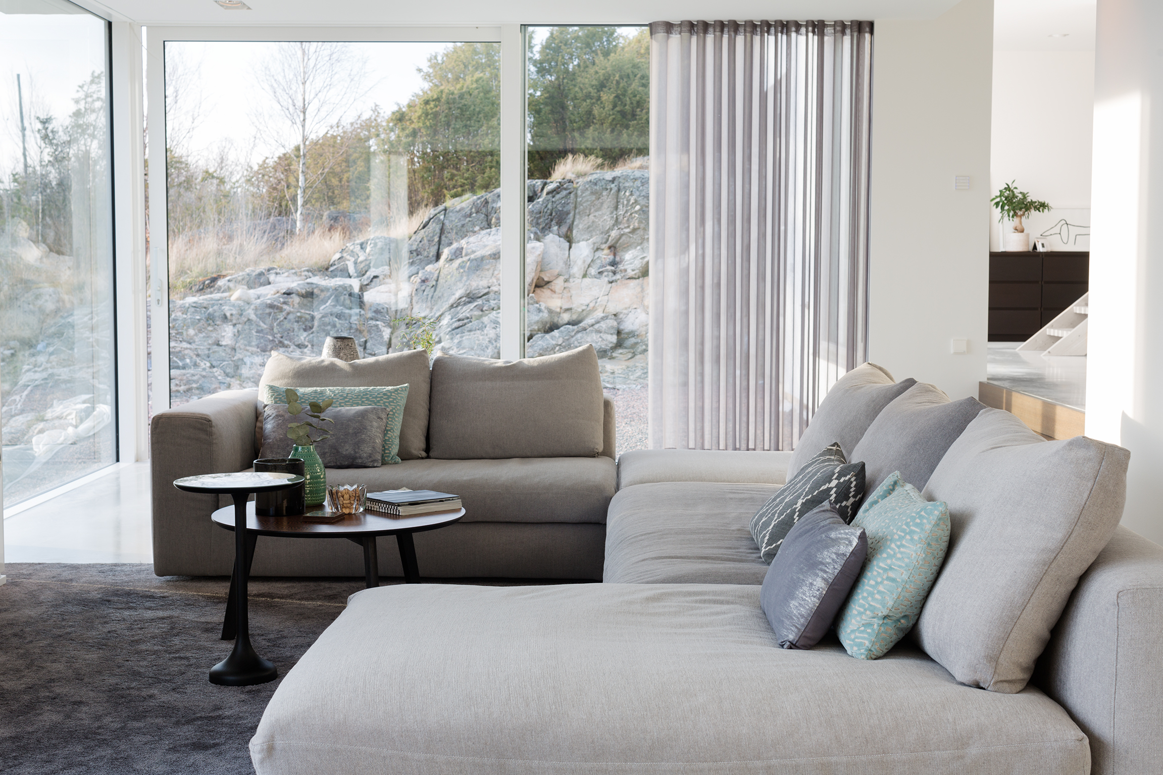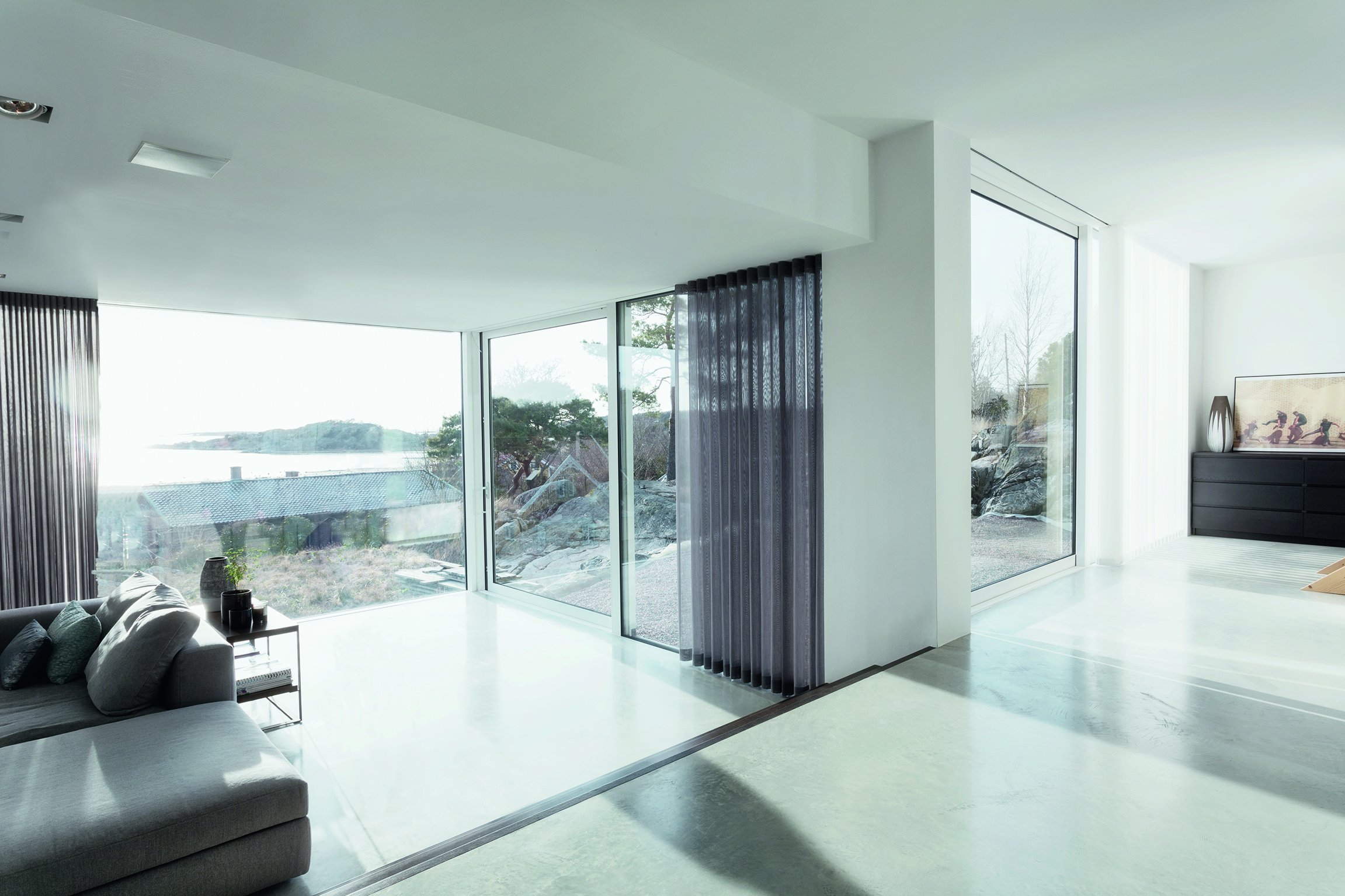 Abgesehen von formaler Schlichtheit, kubischem Baukörperdesign mit Flachdächern und einem puristisch-reduzierten Baustoffeinsatz wird der Bauhaus-Stil mit großflächigen Verglasungen in der Fassade assoziiert. In dem erweiterten und teils neu errichteten Mittelgeschoss wollten die Bauherren der Villa in Särö diese gestalterischen Prinzipien konsequent umsetzen. Hier sollte aus allen Funktionsbereichen heraus der Panoramablick auf die umliegende Landschaft so großflächig wie möglich realisiert werden. Zugleich wollte man durch den Einsatz von Schiebesystemen eine flexible, offene Raumnutzung in Abhängigkeit von Jahreszeiten und Wetter ermöglichen. Eine technische und optische Feinabstimmung der Systeme war dabei eine wichtige Voraussetzung.