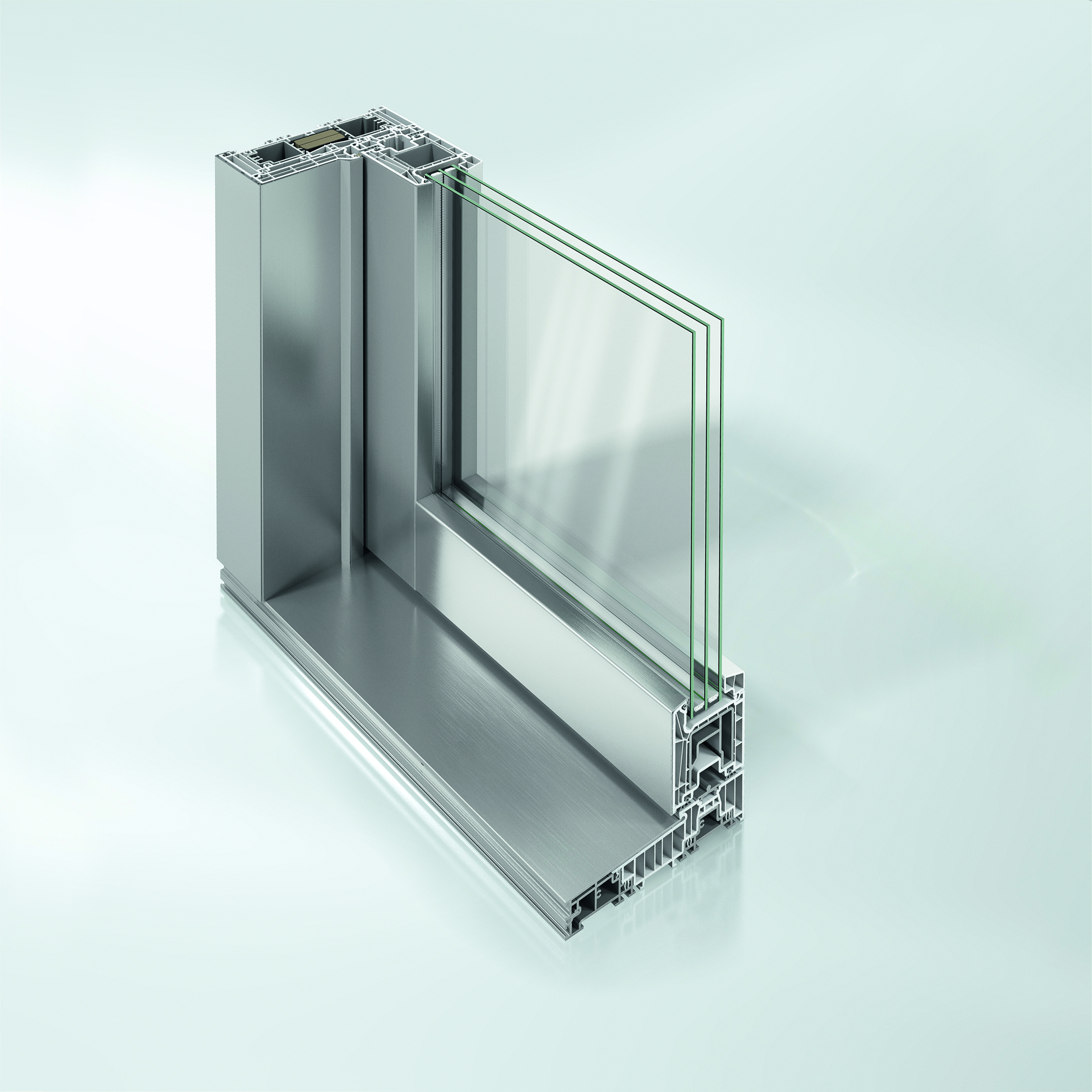 Schüco LivIngSlide basiert auf einer 6-Kammer-Flügelprofilkonstruktion. Mit einer Flügelbautiefe von 82 mm erreicht das System Uf-Werte bis 1,3 W/(m2K). In weißer Ausführung sind Elementgrößen von 6.500 mm Breite und 2.800 mm Höhe realisierbar – unter Berücksichtigung des maximalen Flügelgewichtes von 400 kg. Die Stabilität solch großformatiger Konstruktionen lässt sich durch Stahlverstärkungen im Flügelrahmen, die als geschlossene Rechteckrohre ausgeführt sind, erreichen. Aus festen und beweglichen Flügeln lassen sich zwei-, drei- und vierflügelige leichtgängige Elemente kombinieren und als ein- oder zweispurige Schiebeanlage ausführen. Eine Laufwagenabstützung dient zur sicheren Zentrierung und Befestigung und gewährleistet eine komfortable Bedienung. Je nach Elementvariante ist Einbruchhemmung bis RC2 möglich. Den passenden Beschlag, inklusive der Griffe liefert Schüco gleich mit. Bei einer Zargenbautiefe von 194 mm ist das System für Neubau und Renovierung in jeder Klimazone geeignet.