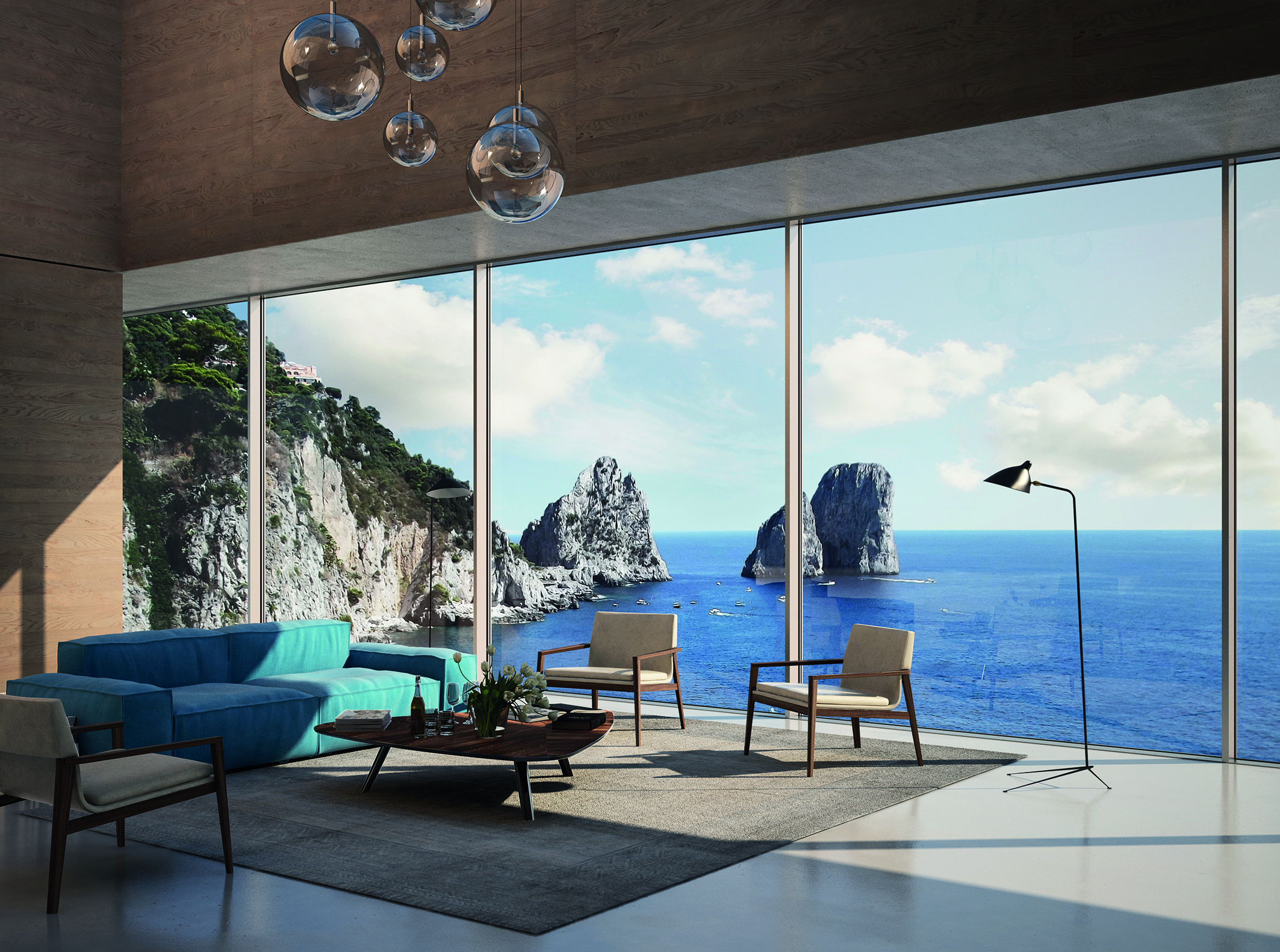 Das Fenstersystem Schüco AWS 75 PD.SI (Aluminium Window System, Panorama Design, Super Insulated) zeichnet sich durch großformatige Fensterflügel und filigrane Profilansichten für einen maximalen Lichteinfall aus. Einen größtmöglichen Ausblick bietet auch das Schiebesystem Schüco ASE 67 PD (Aluminium Sliding Elements, Panorama Design) mit der Möglichkeit, den Blendrahmen in die Wände des Gebäudes zu integrieren. Zudem sorgt eine bodengleiche Schwelle für zusätzlichen Komfort. Mit der Panorama-Design-Fassade Schüco FWS 35 PD (Façade Wall System) lassen sich schmalste Ansichtsbreiten von nur 35 mm realisieren – mit besten Wärmedämmwerten auf Passivhaus-Niveau.