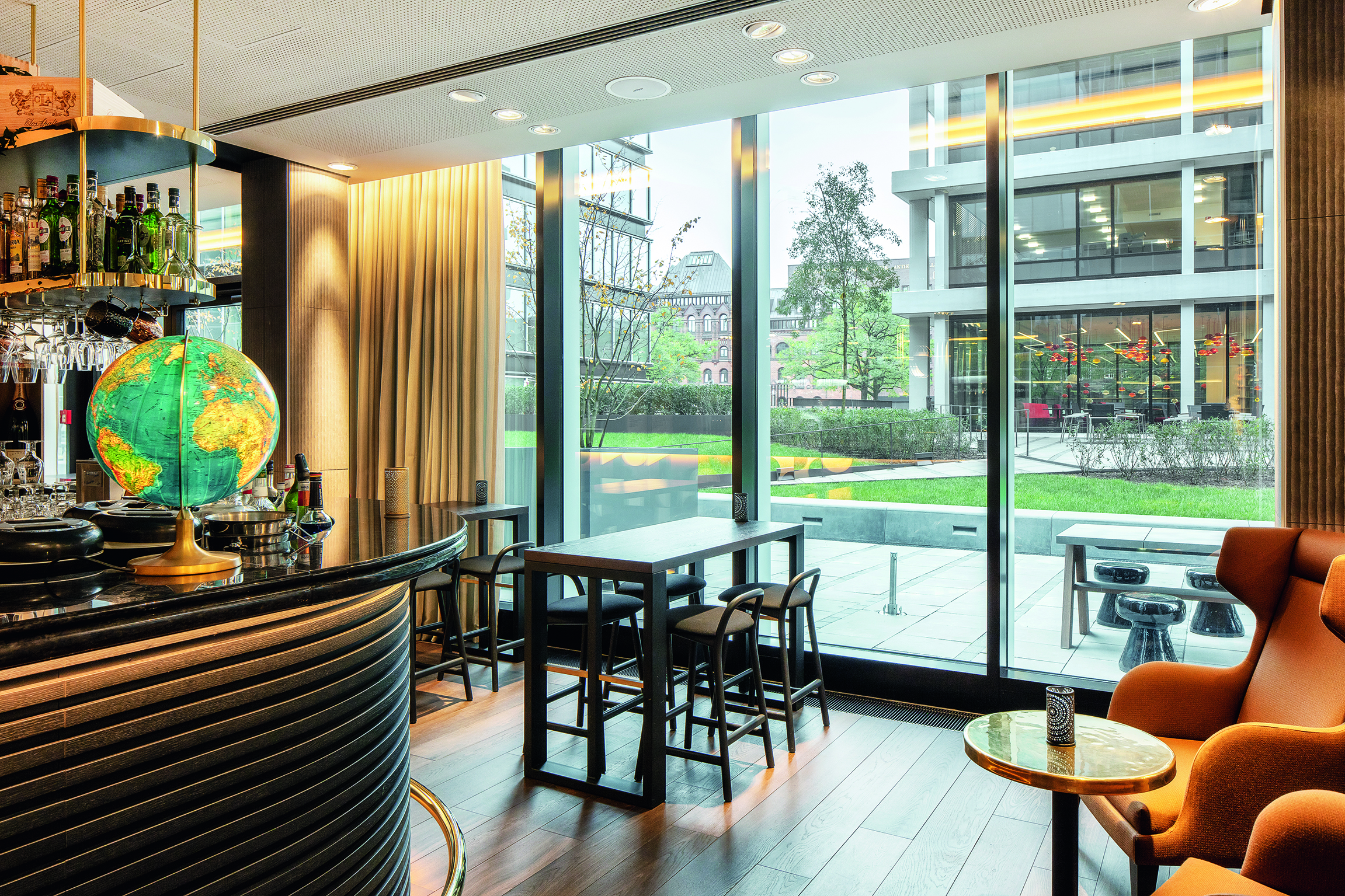 Um eine möglichst frühe Fertigstellung des Hotelbaus zu ermöglichen und gleichzeitig eine reibungsfreie Logistik für die weiteren Bautätigkeiten auf der Spiegel-Insel sicherzustellen, war der Rohbau mit Hilfe einer intelligenten Verbindung von Fertigteil-, Halbfertigteil- und Ortbetonbauweise in einer Rekordzeit von 15 Tagen pro Geschoss errichtet worden. Nach Abschluss der Rohbauarbeiten konnte im nächsten Schritt die Fassade umgesetzt werden. Um die Anforderungen an hohen Schallschutz und optimale Wärmedämmung zu erfüllen und eine harmonische Ansicht zu erhalten, die trotzdem den Einbau von Fensterflügeln zuließ, kam das neu entwickelte Schüco Fassadensystem FWS 60 CV zum Einsatz, das auch bei den anderen beiden Neubauten vor Ort verwendet wurde: „Eine Besonderheit des Systems ist, dass die Festfelder und die Öffnungselemente mit einer Ansichtsbreite von nur 60 Millimetern von außen nicht zu unterscheiden sind“, erklärt Michael Spranger, Key Account Manager bei Schüco. „Und auf der bündig geschlossenen Innenseite sind die Fensterflügel nur durch eine filigrane Schattenfuge und den Fenstergriff erkennbar.“